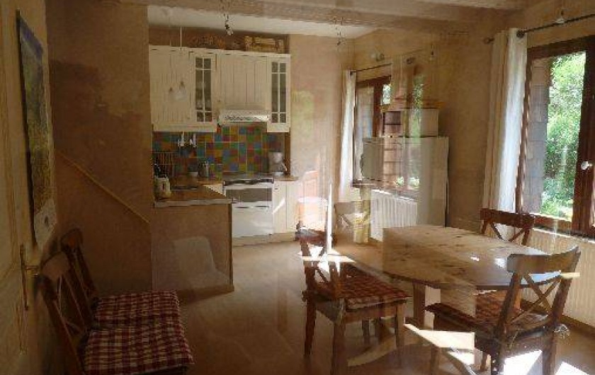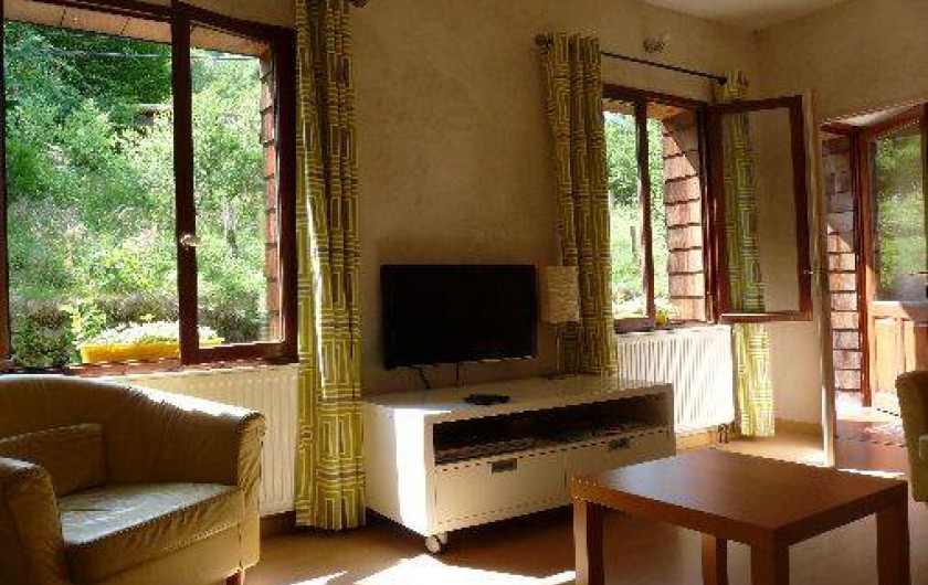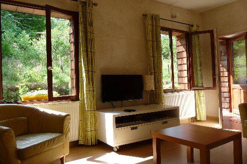 Location type chalet, gîte bien équipé et confortable, à l'intérieur douillet et coloré.