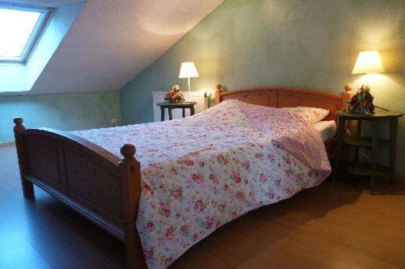 maison des propriétaires. Entrée indépendante. R.d.c. et 1er étage : 2 chambres (2 lits 2 pers. 140x200, 2 lits 1 pers.90x190 , lit bébé). Cuisine. Salon. TV et lecteur DVD. Salle d'eau et WC. Chauffage central fuel. Grand terrain non attenant avec espace barbecue et relax.