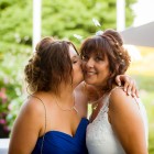 1) SDB avec baignoire d'angle et vasque WC, 2) SDB avec douche italienne et double vasque.