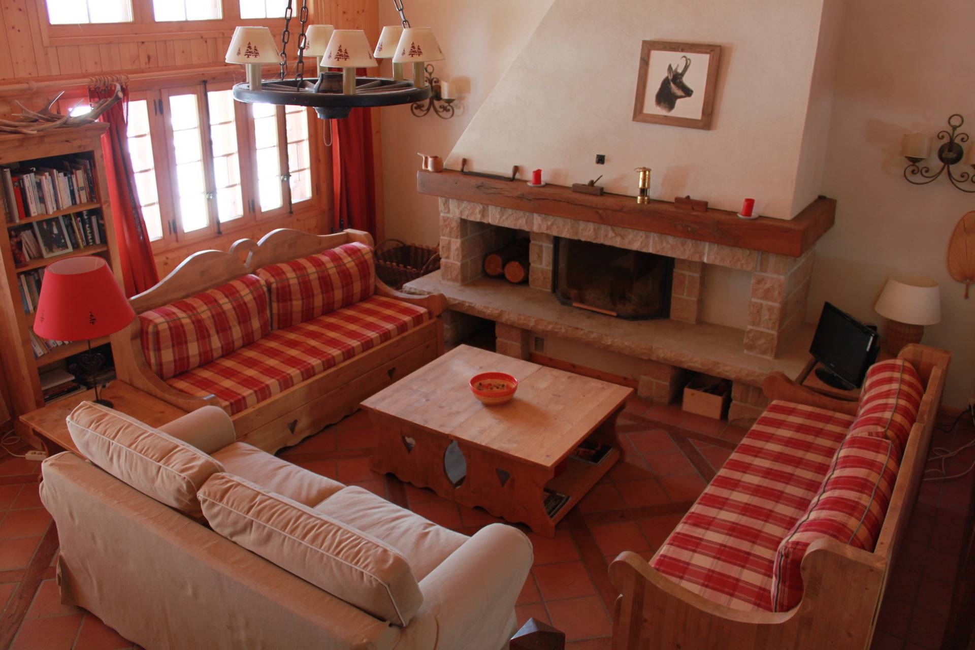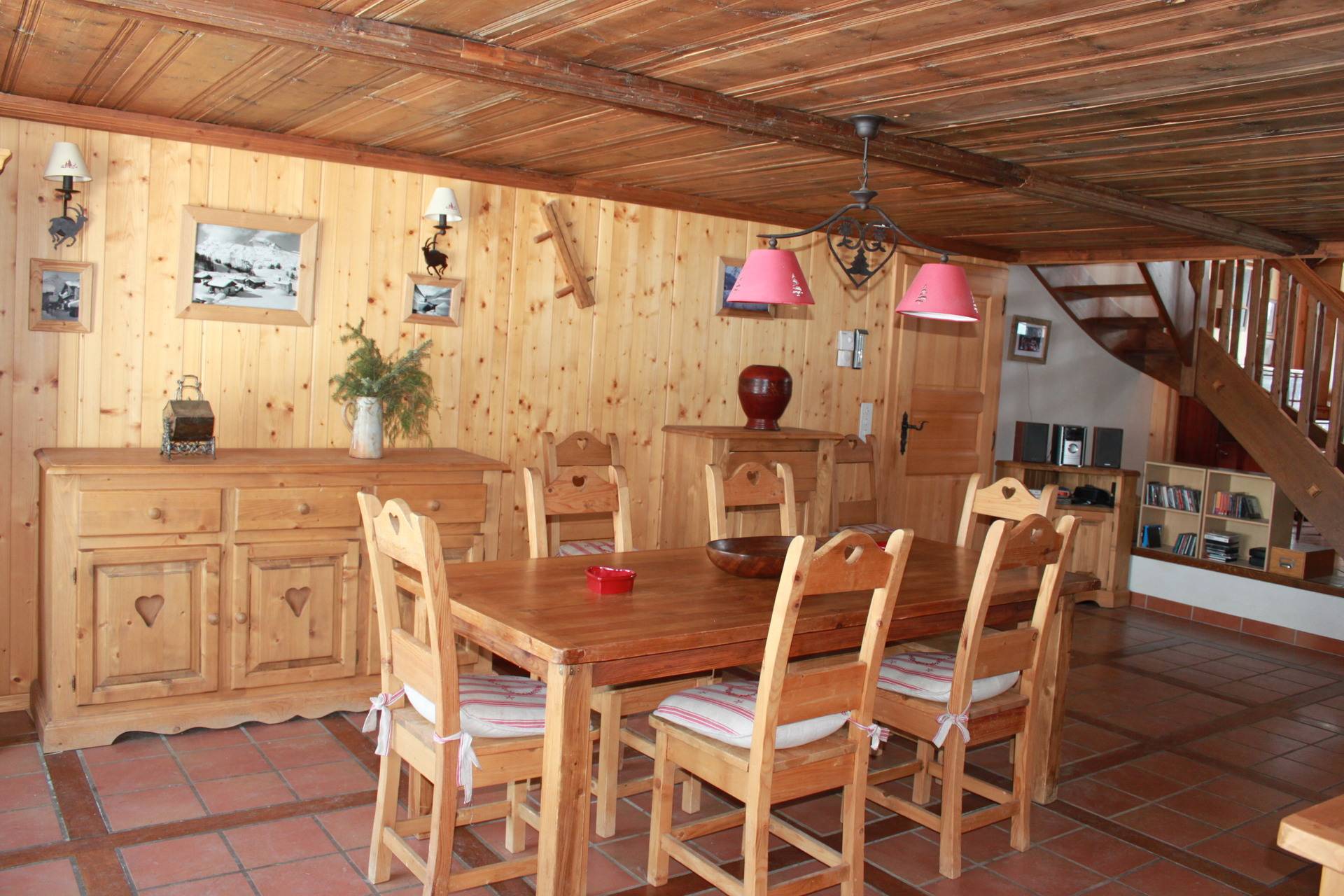 Grand chalet comprenant au rez de chaussée un sejour cathedrale avec une grande cheminée, une cuisine entièrement equipee ouverte sur la salle à manger, deux entrées, un local à ski, une buanderie, une chambre et une salle de bains-WC au 1er étage trois grandes chambres, une salle de bains-WC, au 2ème etage, une grande chambre avec 4 lits d'une personnes et deux bureaux Le chalet donne à l'Est et à l'Ouest sur deux terrasses avec jardin, trois places de parc extérieures