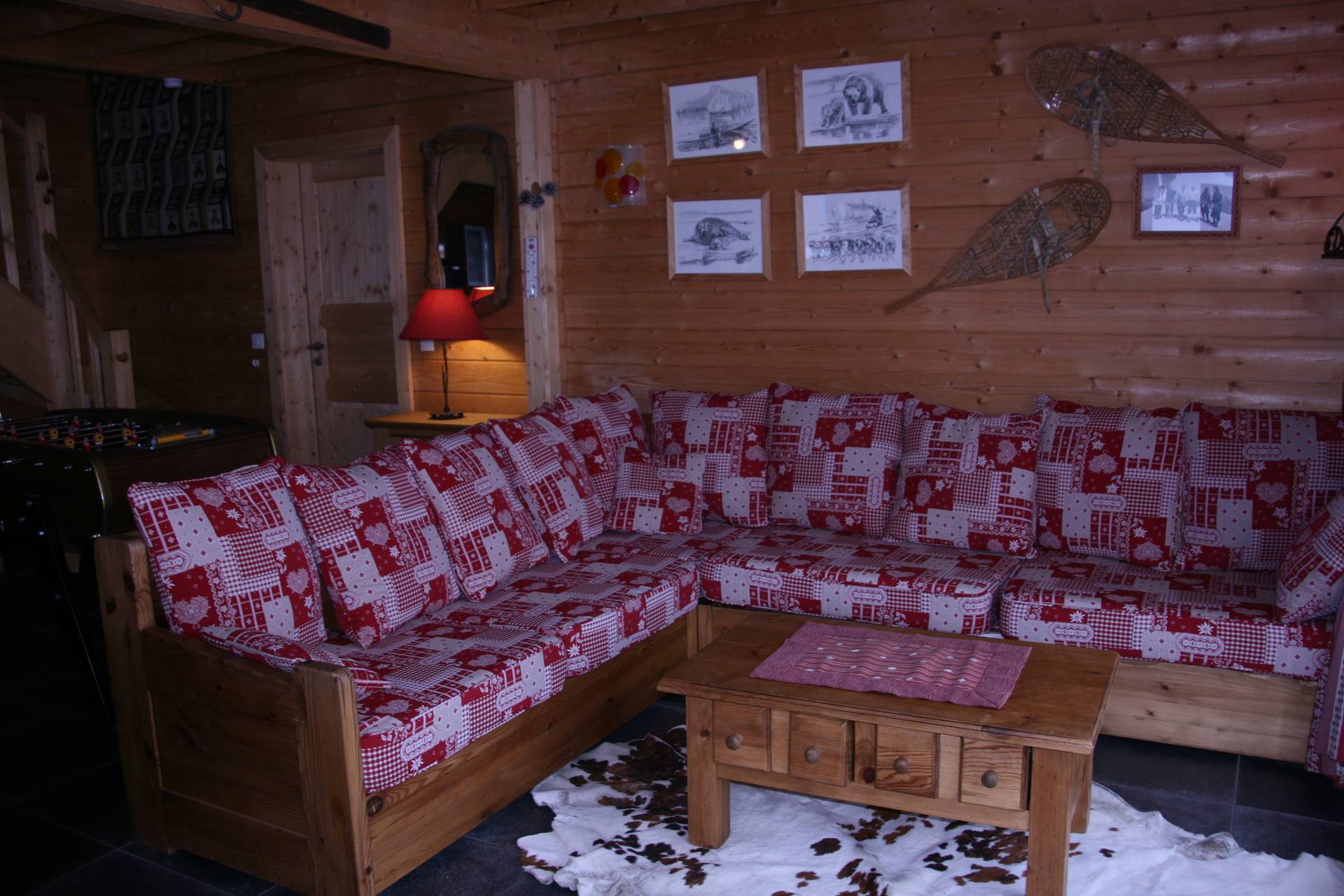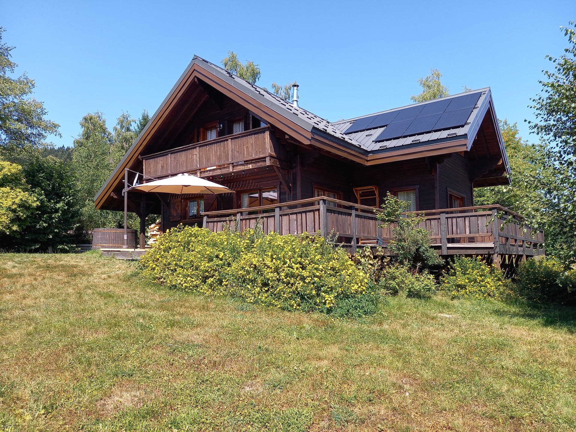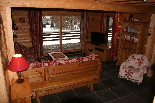 Chalet en madriers chaleureux et lumineux au calme accueillant 12 personnes dans de beaux volumes.