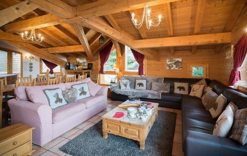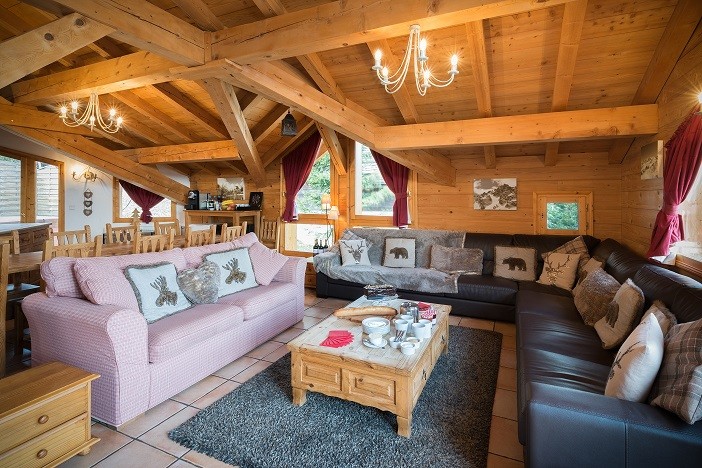 se traduit par beaucoup de lumière et d'espace ainsi que par des vues imprenables. Décoré de canapés accueillants, de coussins en fourrure et d'un décor savoyard vintage, le chalet est chaleureux et confortable.