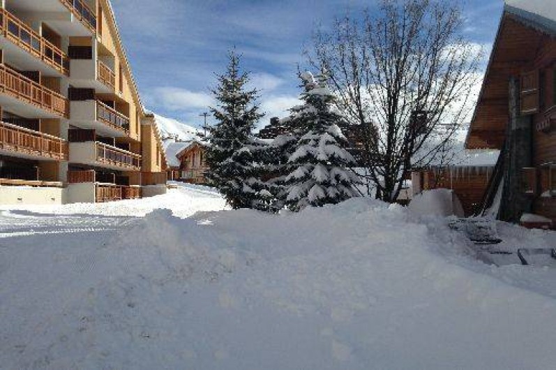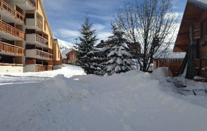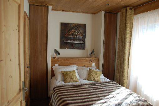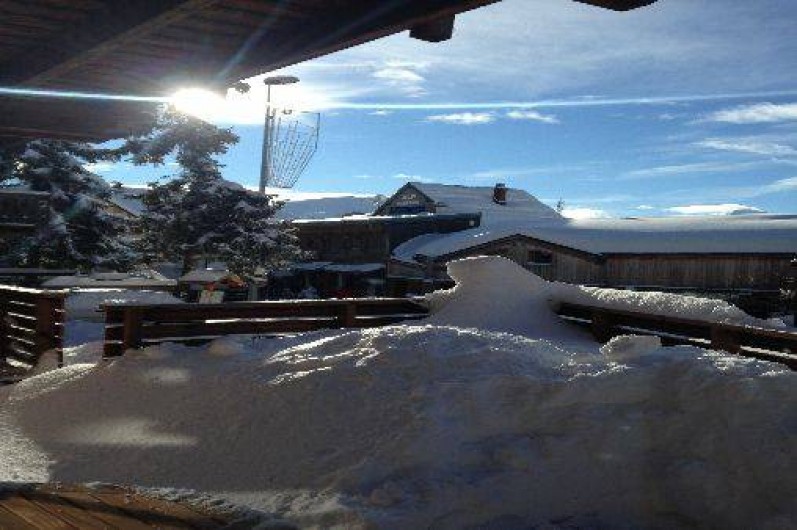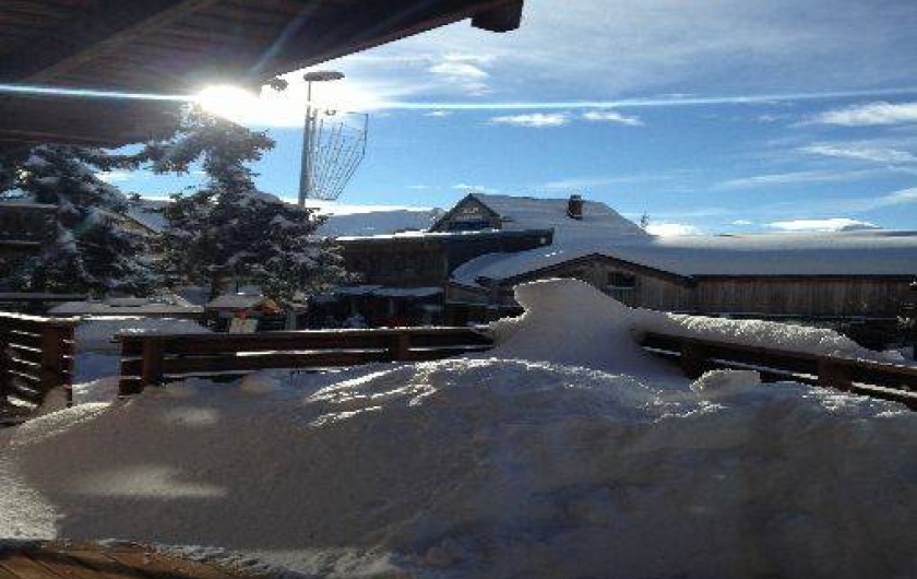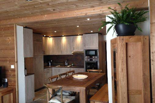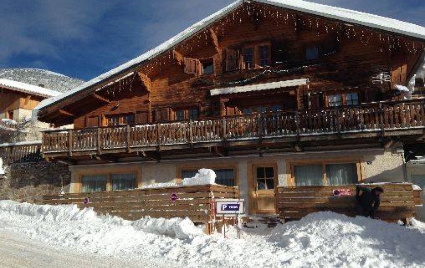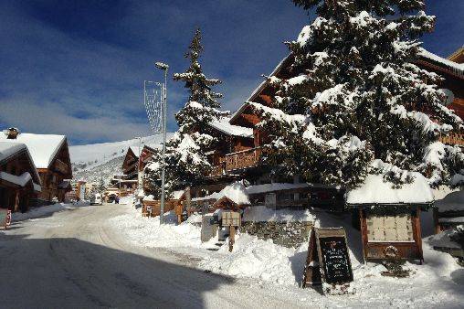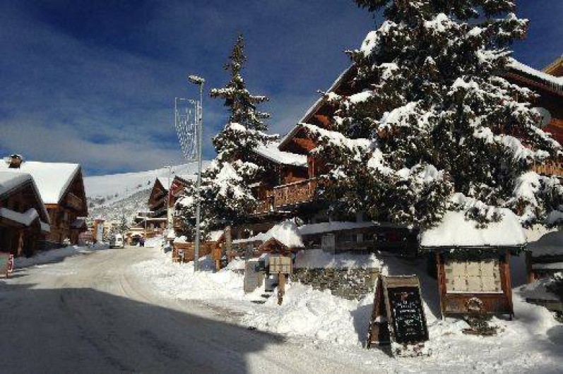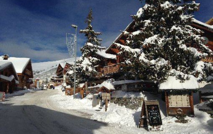 Rez de jardin d'un chalet montagne, exposition sud, terrasse aménagée, 1800 m, quartier historique de la station, rue calme, à proximité des commerces, services, office du tourisme, loueurs skis et restaurants, départ et retour skis aux pieds, accès haut de station par télécentre, navette gratuite (100 m),