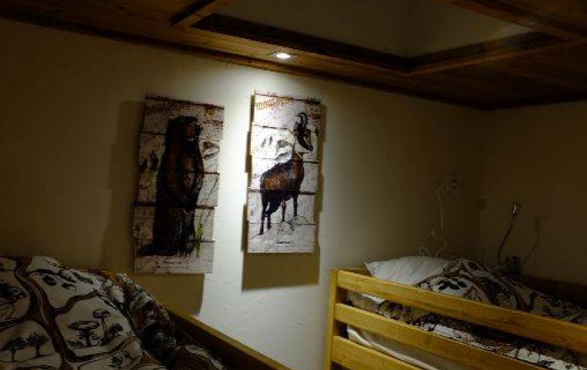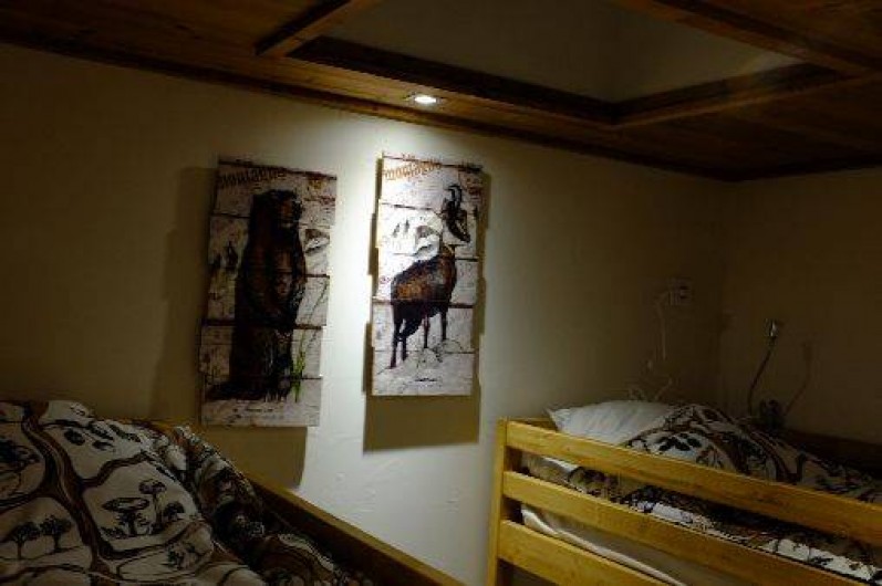 Chambre "Babysitting" quadruple, exposition Nord-ouest, ouverture velux ®: 4 couchages (2 lits superposés 80X190), TV, 1 placard.