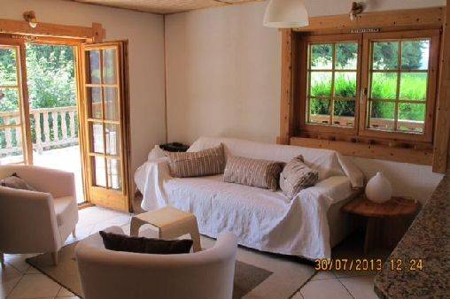 Lumineux appartement indépendant dans un chalet individuel situé au calme proche de la forêt. Accès de plein pied. L'appartement est idéal pour un couple avec 2 voire 3 enfants. Les propriétaires vivent au-dessus. L'appartement tout confort est composé d'un salon (canapé convertible) avec poèle à bois (en sus du chauffage central), une cuisine américaine, une salle à manger, 2 chambres à coucher avec télévision, l'une avec un lit double et l'autre avec dues lits simples, une salle de bain et un wc séparé. Piscine couverte, cave, parking extérieur et accès à la buanderie