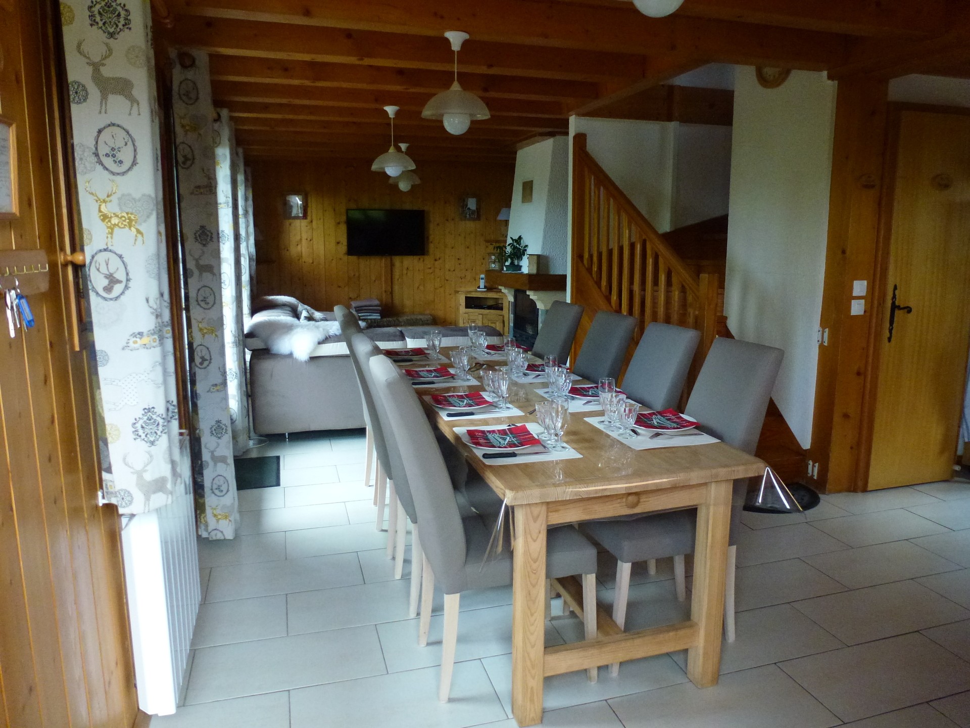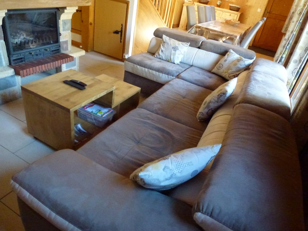 1 Petite table de salon avec 1 vase 1 Meuble télévision + téléphone 1 Téléviseur couleur mural avec télécommande 1 Décodeur Orange avec télécommande Cheminée 1 Panier à bois 1 Porte balai + crochet + pelle pour cheminée 2 étagères en coin avec 2 lampes 1 Sous verre avec plan des pistes 1 Sous verre avec plan de randonnée 1 Grand vase 4 cadres avec photos 1 Tringle à rideaux porte fenêtre 1 Paire double rideaux fenêtre 1 rideau petite fenêtre