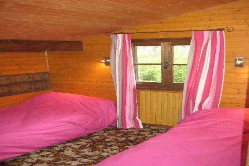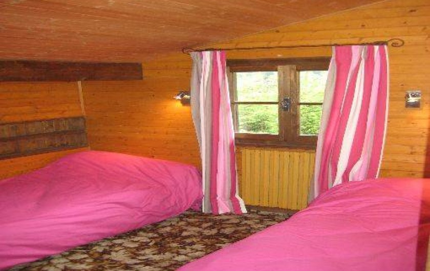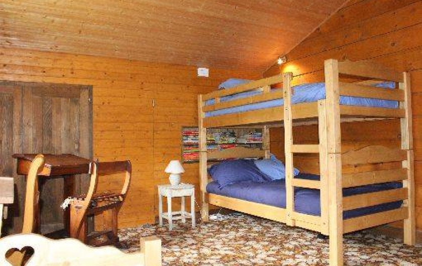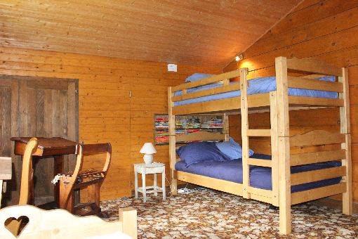 étage supérieur : 2 chambres , une avec deux lits de 90cm et une avec 1 lit a étage, 1 lit de 90cm et un matelas de bonne qualité sous le lit , un lit pliant de bébé.