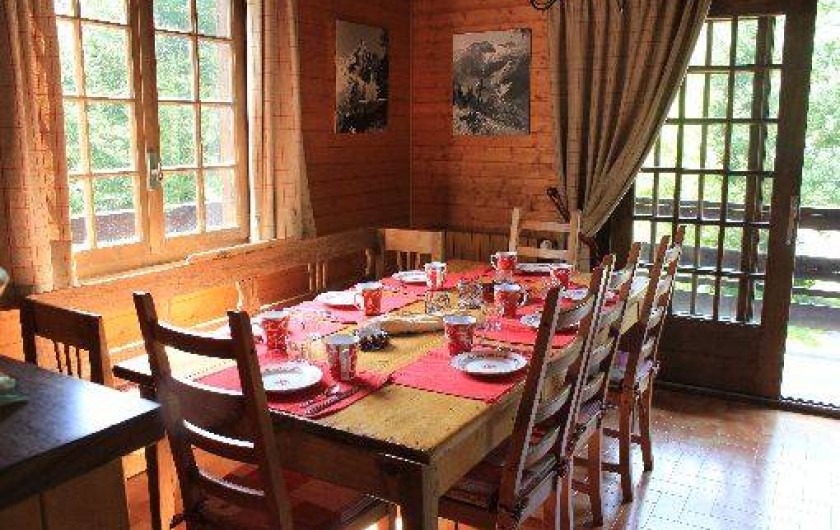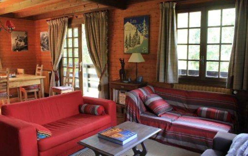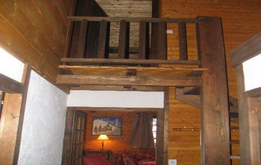 1 étage avec séjour donnant sur balcon avec fenêtres Est, Sud et Ouest comprenant salon avec cheminée, 3 canapés, TV, lecteur DVD, chaine HI-FI, Cuisine américaine avec lave-vaisselle, grand espace repas avec table de ferme pour 8 personnes -une chambre parentale avec lit de 160cm,salle de bain et WC séparés.