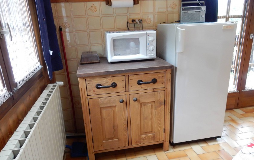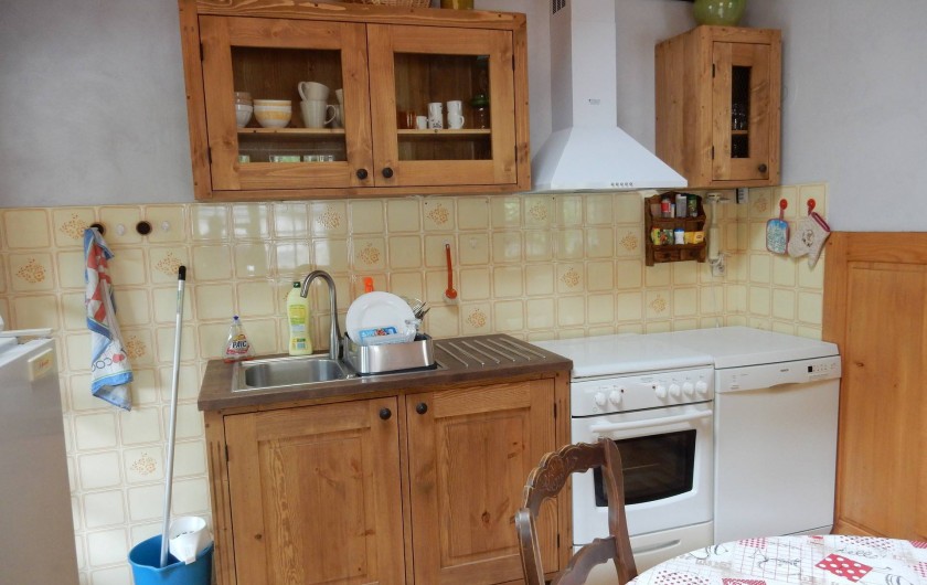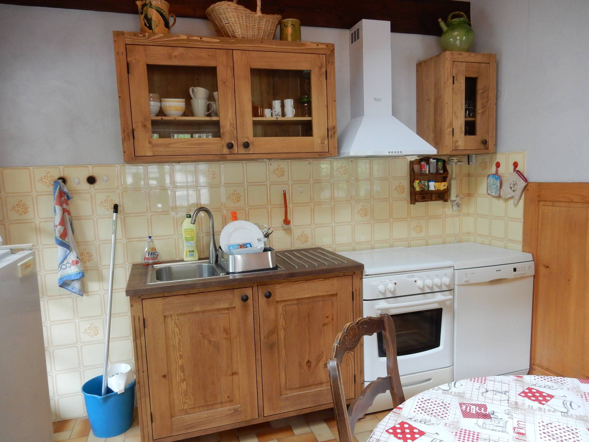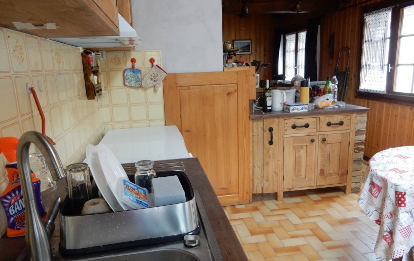 CUISINE AMERICAINE AVEC TOUT LE CONFORT( CUISINIERE GAZ ELECTRICITE, REFRIGERATEUR , LAVE VAISSELLE MICRO ONDE,DE NOMBREUX PLACARDS , UNE TABLE RONDE 4 PERSONNES