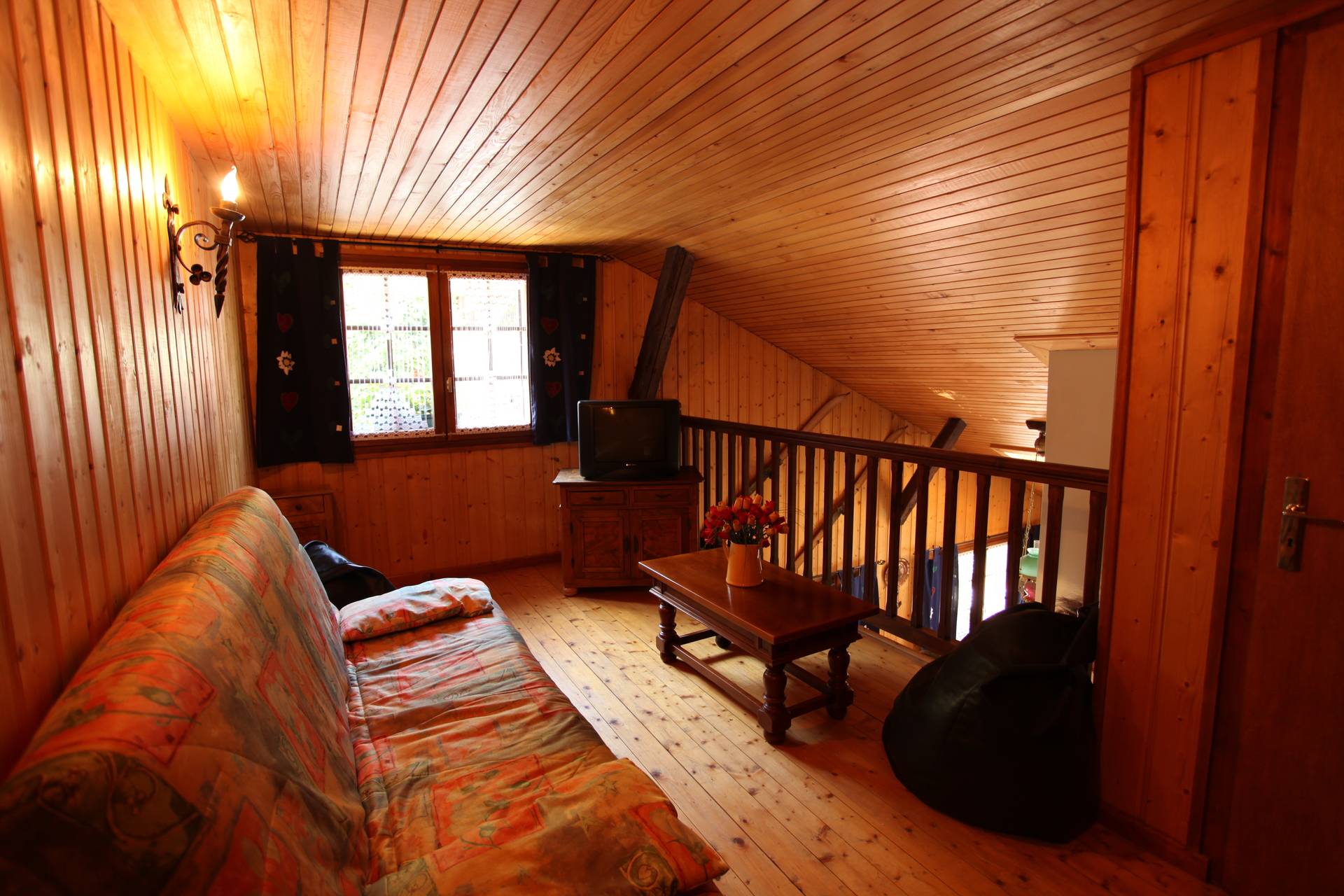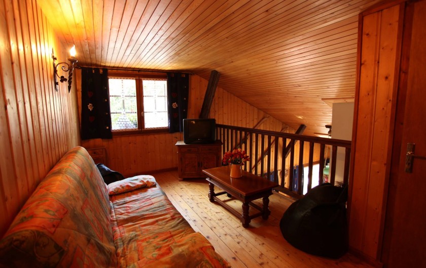 UN PETIT TOUR A LA MEZZANINE (COIN DETENTE) UNE TELEVISION , UN CLIC CLAC UNE TABLE BASSE.