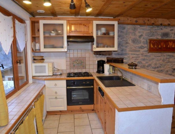 Cuisine : 3 feux gaz / 1 plaque électrique, hotte, four, micro-ondes, lave-vaisselle, réfrigérateur, cafetière électrique, bouilloire, grille-pain, appareil à raclette, fondue