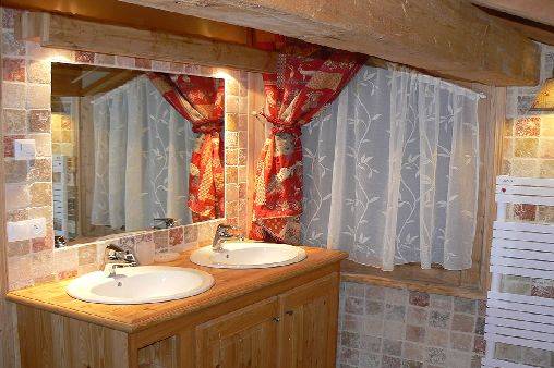 Chalet de grand standing, fusion de matériaux nobles : une solide fondation montée en mur de pierres apparentes, du mélèze pour la structure des charpentes, de la terre cuite pour les tomettes et des lauzes immuables pour le toit. C'est le mariage parfait du bois et de la pierre dans la pure tradition des chalets de Savoie.
