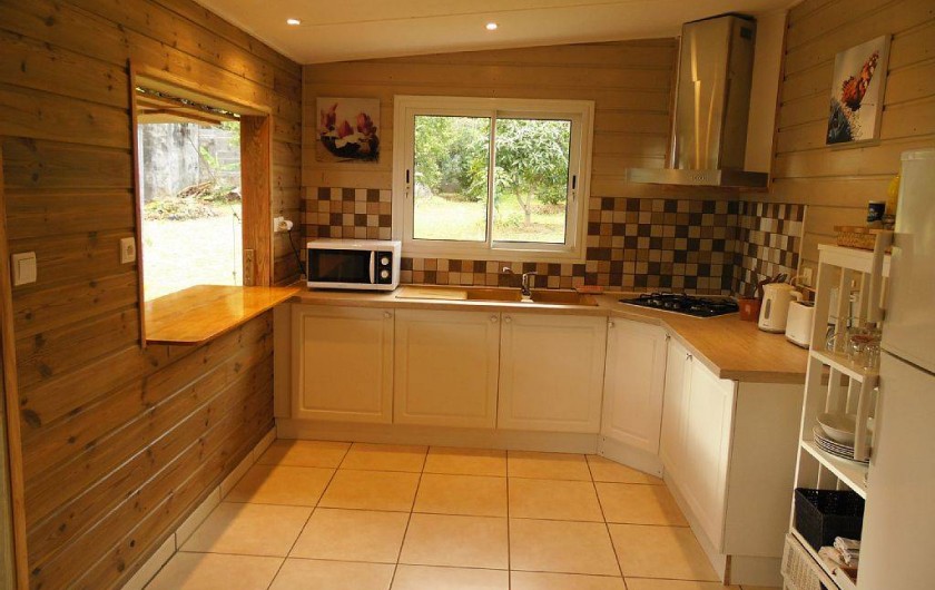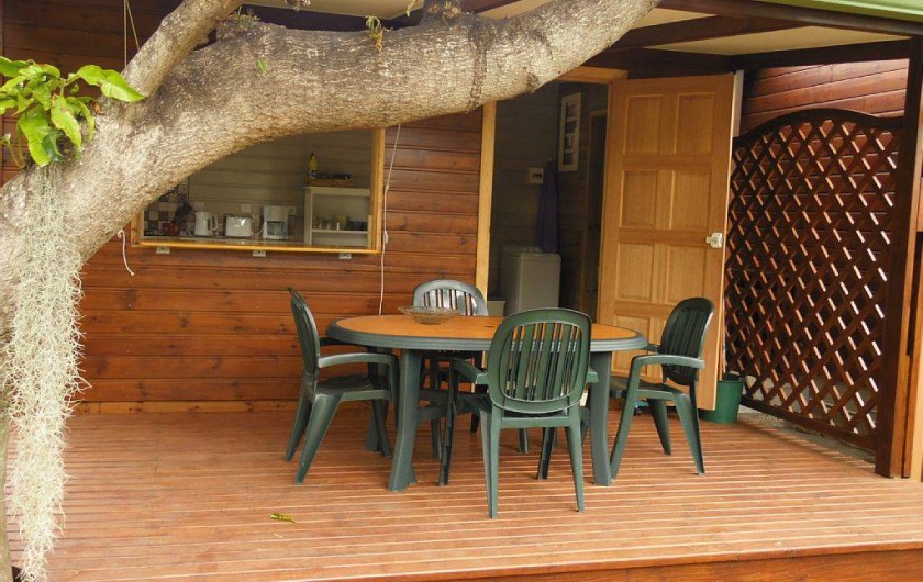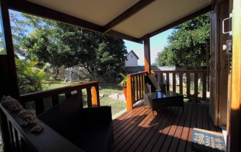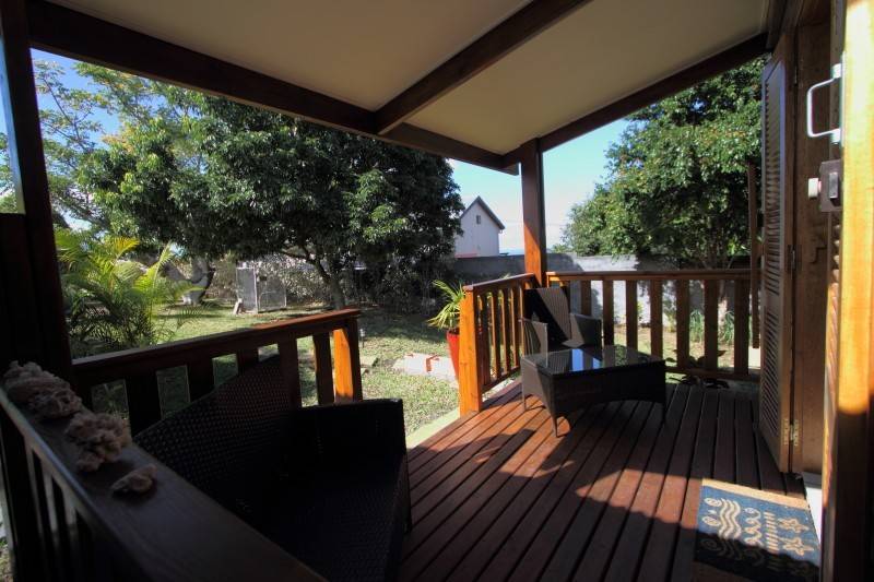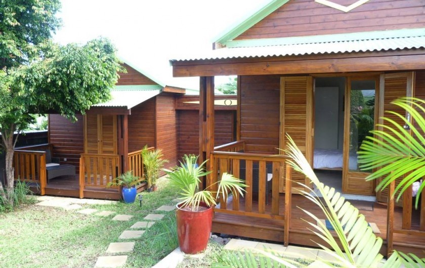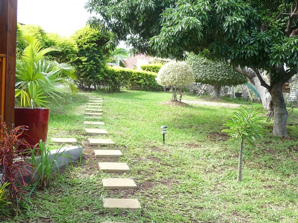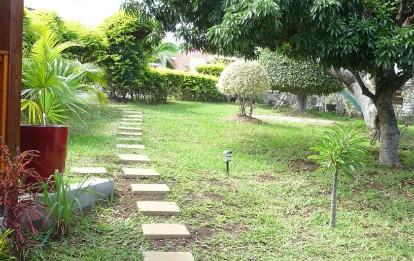 L'ensemble ( chalet et terrasses) est noyé dans la verdure d'un jardin calme, bien entretenu et planté de nombreuses essences exotiques ( manguier , letchis , papayer , bananiers , palmiers divers,..)