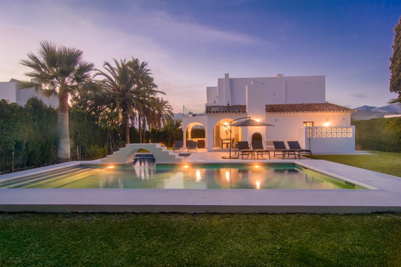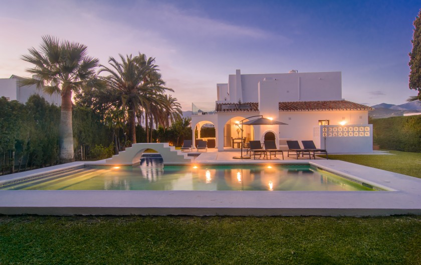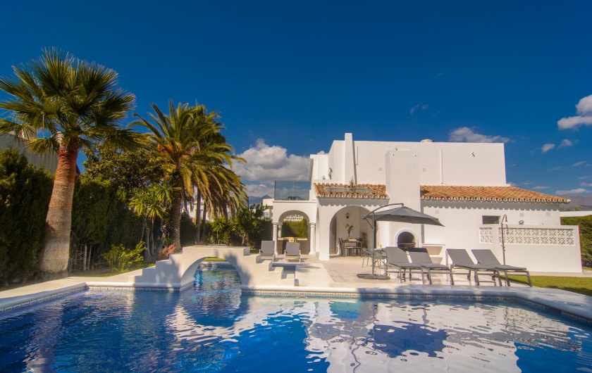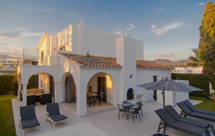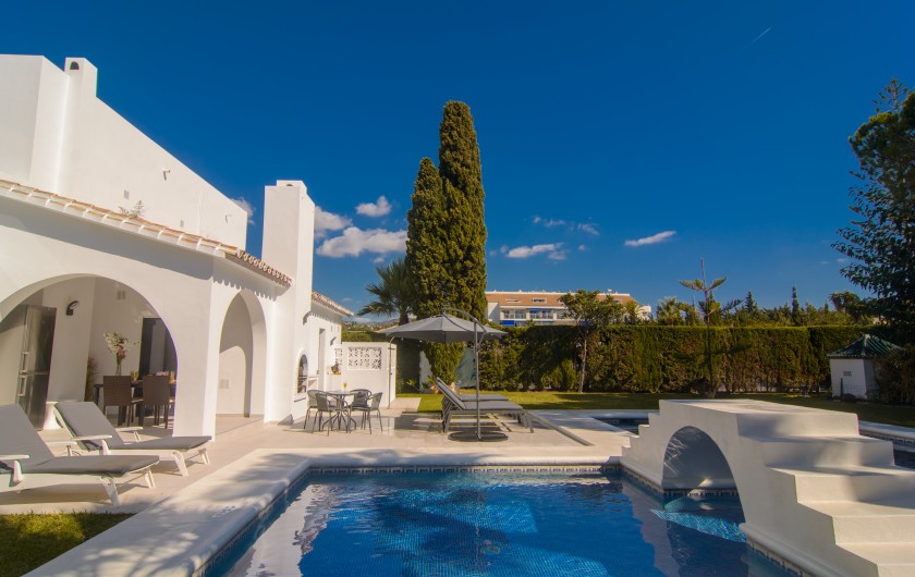 Vous êtes à la recherche d'un lieu de vacances qui combine parfaitement la tradition andalouse avec le besoin d'un design moderne ? Visitez notre belle villa et toutes vos attentes seront comblées ! Cette maison de ville de 5 chambres (300m2) orientée sud est située sur un terrain généreux (1000m2), possède une végétation méditerranéenne, une piscine en forme de L au design particulier avec des escaliers romains (la partie principale est de 9mx4m, la piscine pour enfants est de 3m x 3m), des chaises longues, des terrasses, un espace barbecue, de belles vues sur la mer et les