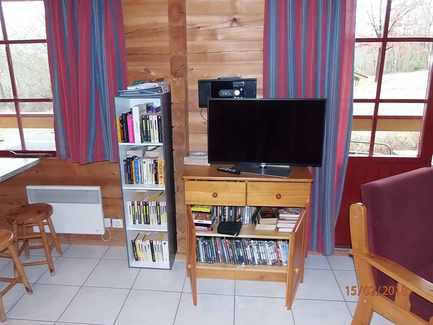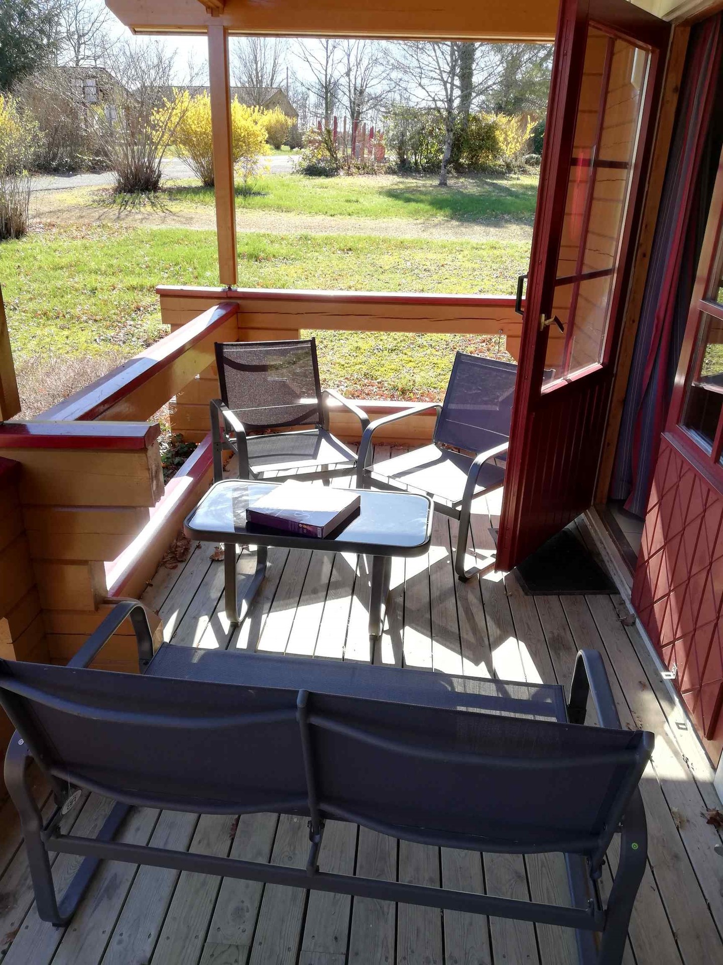 Une terrasse couverte avec salon de jardin (sans vis à vis), qui donne accès à un séjour composé d'un coin salon (canapés, 2 fauteuils), TV écran plat (chaines françaises et chaines hollandaises) avec nombreux DVD enfants et adultes à disposition, bibliothèque, coin salle à manger, et coin cuisine équipé avec lave-vaisselle. Une salle d'eau avec vasque et cabine de douche, wc séparé. 3 chambres dont 2 avec chacune 2 lits 90x200, et la 3ème avec un lit superposé de 2 couchages 90x200. Abri couvert pour 1 voiture. Laverie commune au club-house avec sèche-linge et lave-linge., Barbecue électrique, terrain non clos de 500m² bordé par une forêt.