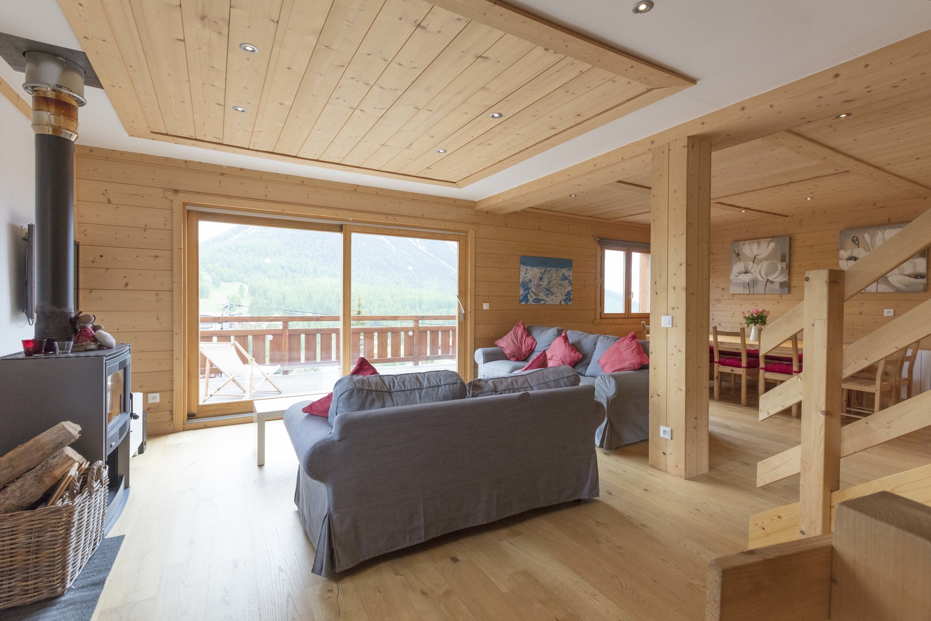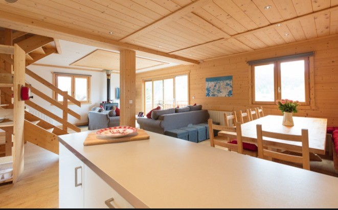 • Au 2ème étage: cuisine, salle à manger, salon avec feu à bois, TV écran plat et terrasse panoramique 9m/3 m (dinatoire et solarium)