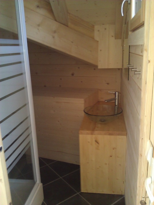 avec 4 lits simples + 1 matelas 1 personne + 1 lit enfant (10-14 ans) suspendu. Salle de douche, WC séparé