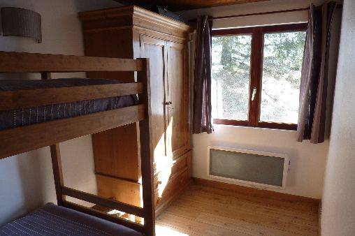 - A l'étage: une cuisine équipée ouverte sur salle à manger et petit salon (avec cheminée/insert), 1 chambre avec lit double, 1 chambre avec lits superposés + lit gigogne, une salle de bain avec WC, un balcon exposé plein sud