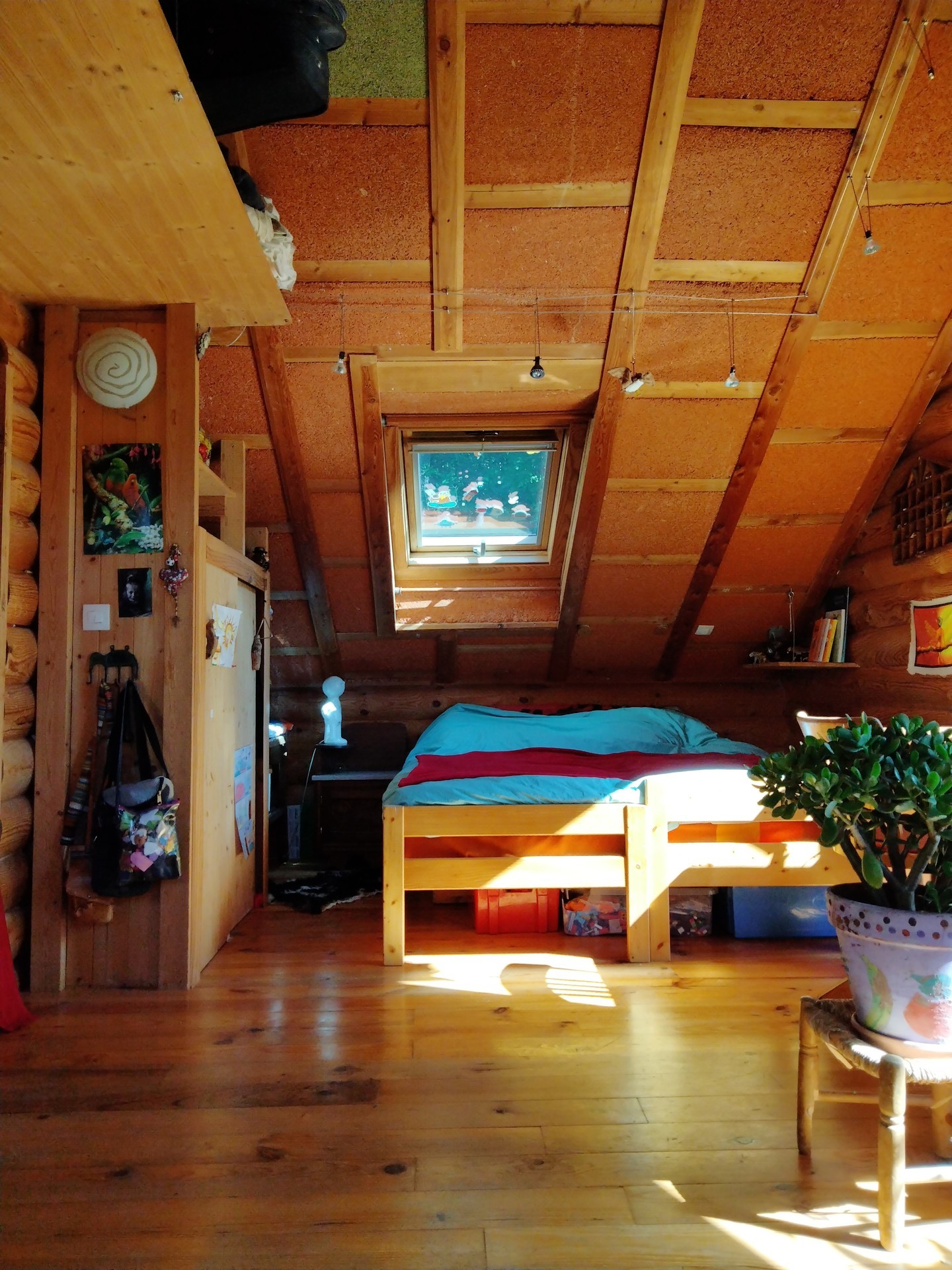 Chalet éco construit ,de 135 m2 ,avec eau chaude et électricité solaire .Matériaux naturels ,chauffage au poêle à bois et l’attention portée, lors de la réalisation, au respect