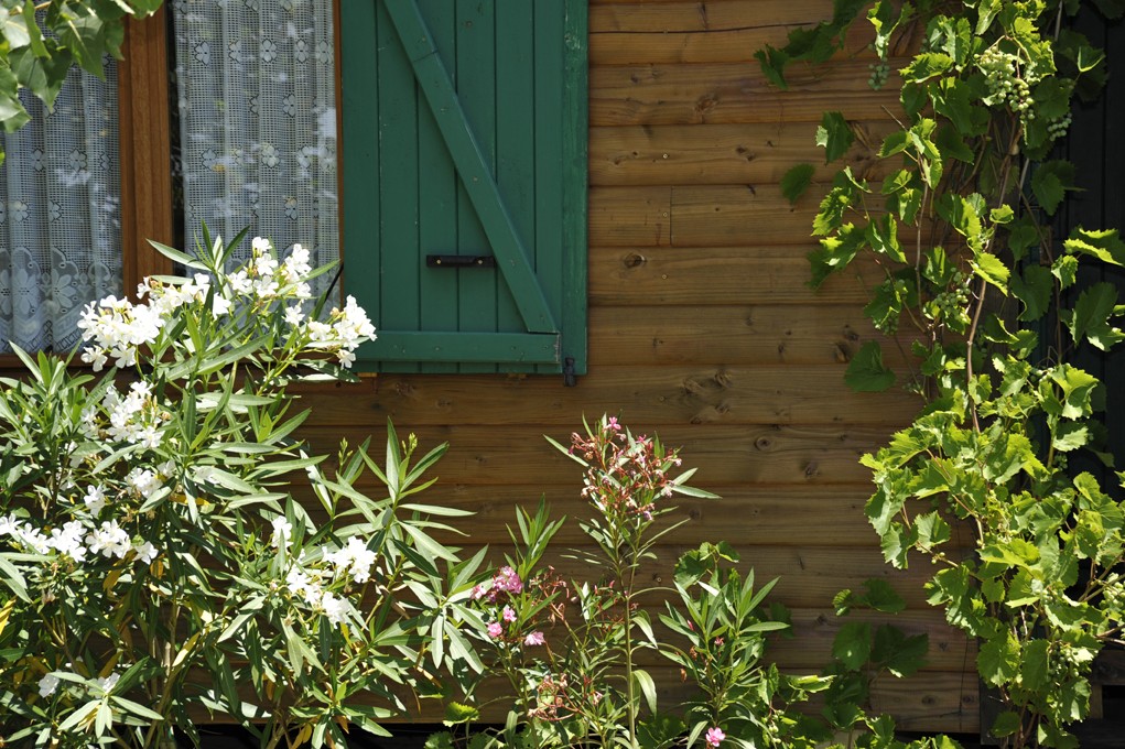 Sur un terrain arboré de 3000 m² nous avons disposé trois chalets individuels avec espace vert, salon de jardin, barbecue, parking, et une piscine commune de 5x10 en dur , sécurisée. Ils sont équipés et climatisés.