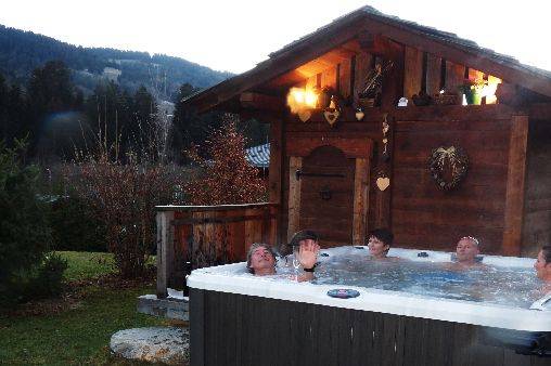Descriptif du Chalet : RDC chambre avec cabine hydro-massante + garage et buanderie. Au 1er étage une entrée, un WC