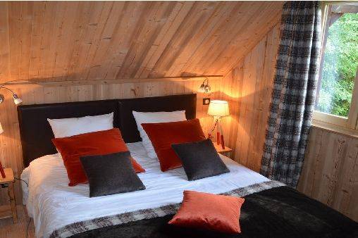 Le chalet comprend aussi 1 chambre lit double 160 avec sdb douche, 1 chambre lit double 160 avec coin lavabo, 2 chambres avec lits double 160 et 2 coins montagne fermés avec lits superposés 80x190, de 2 sdb avec douches et de 3 WC.