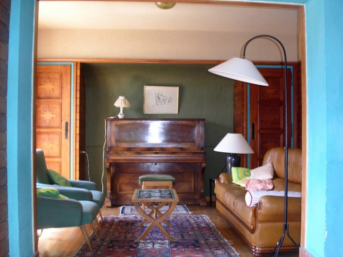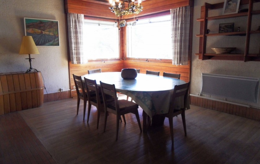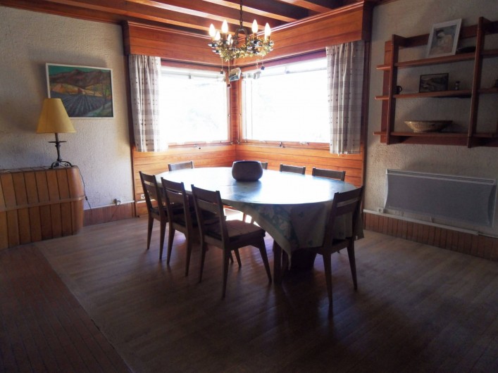 Décoration intérieure toute en mélèze.Cuisine et Bains d'équipements et confort moyen. Chauffage électrique, poêle à bois et cheminée ds séjour pour l' hivers.