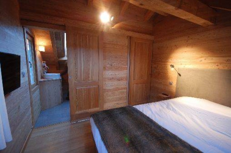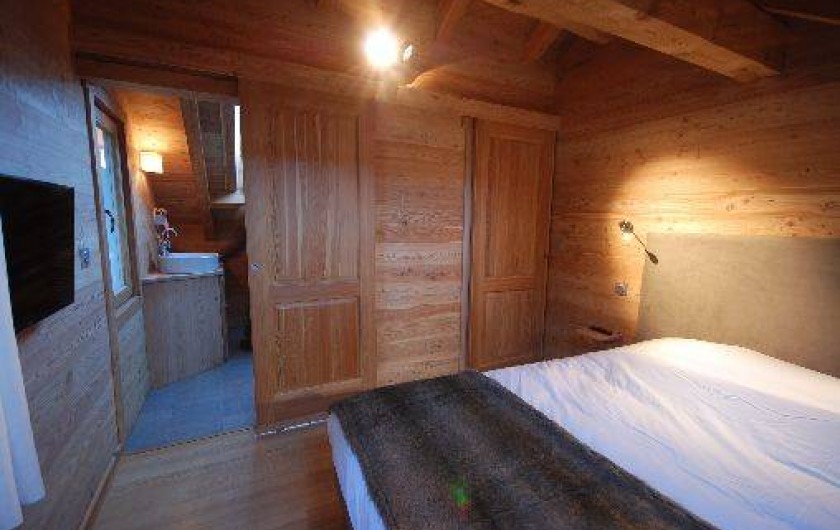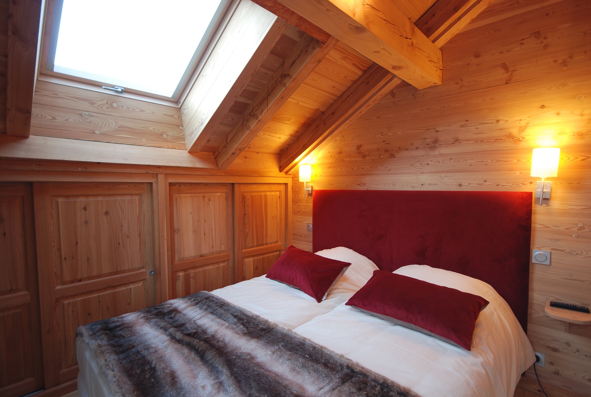Chalet en mélèze, alliant bois traditionnel naturel non traité et pierres, avec un intérieur très contemporain et offrant tout le confort moderne, pouvant accueillir 6 à 8 personnes.