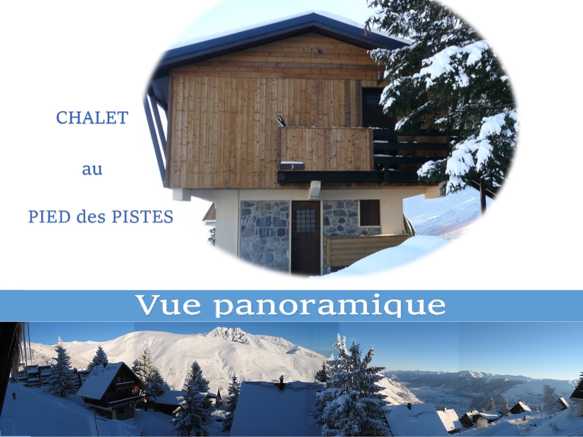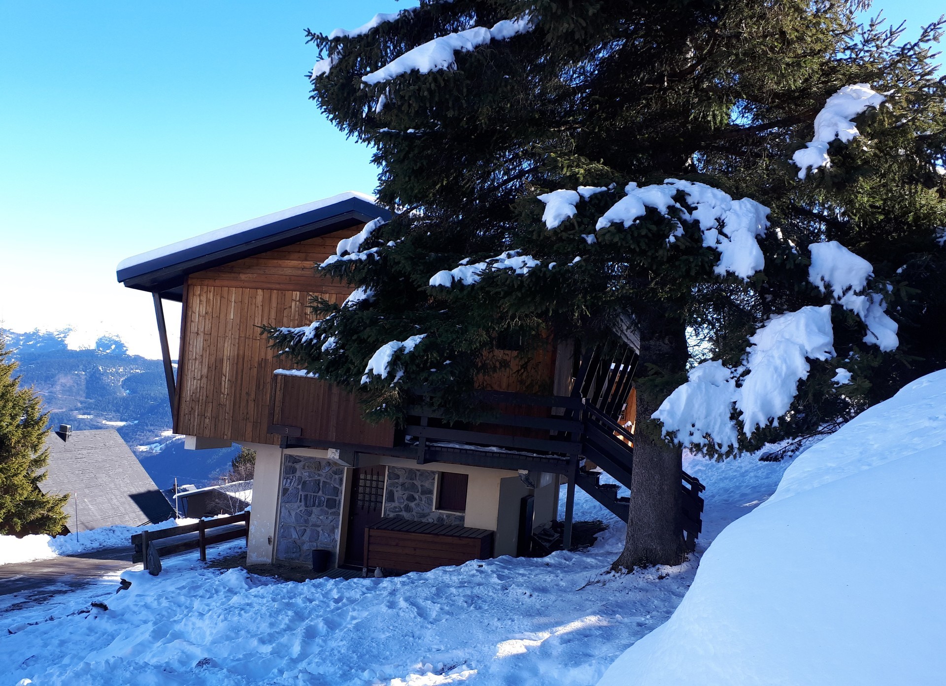 Chalet au pied des pistes avec vue panoramique sur la vallée.