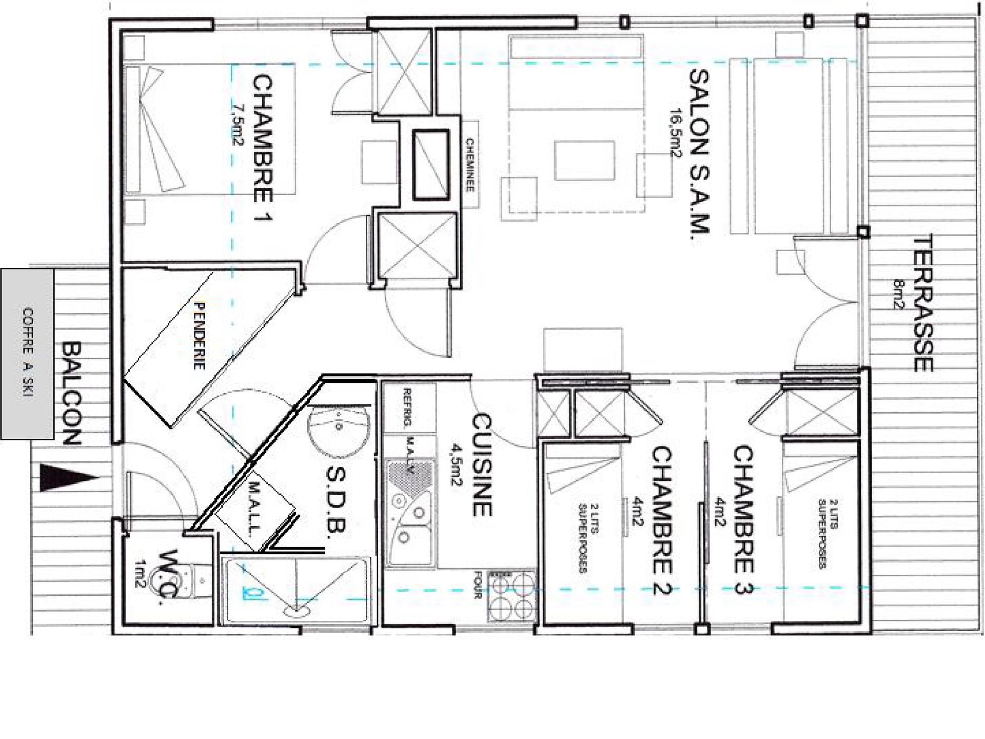 Capacité 8 personnes, mais possibilité de louer en plus un studio 4 personnes au rez-de-chaussée.