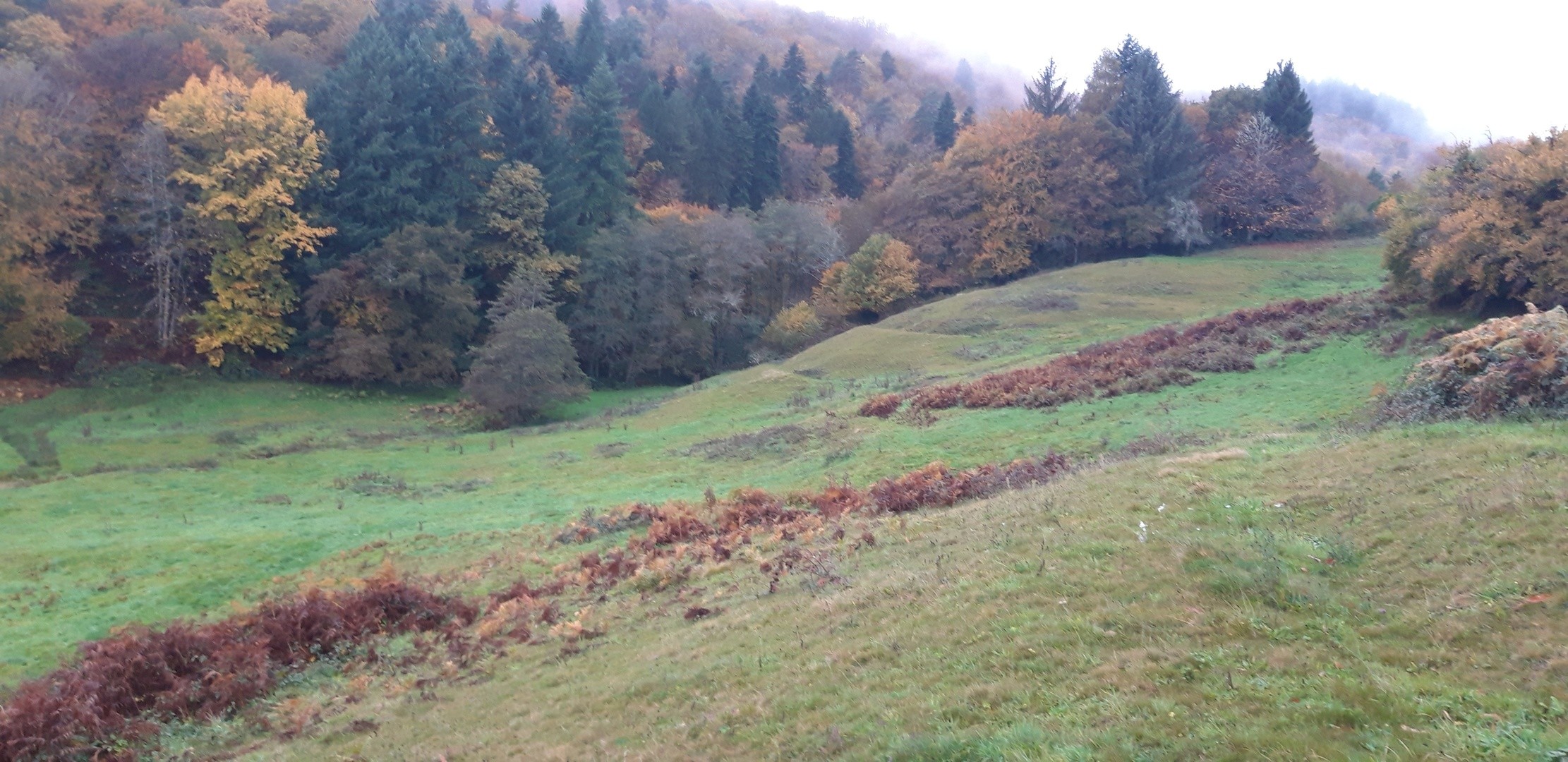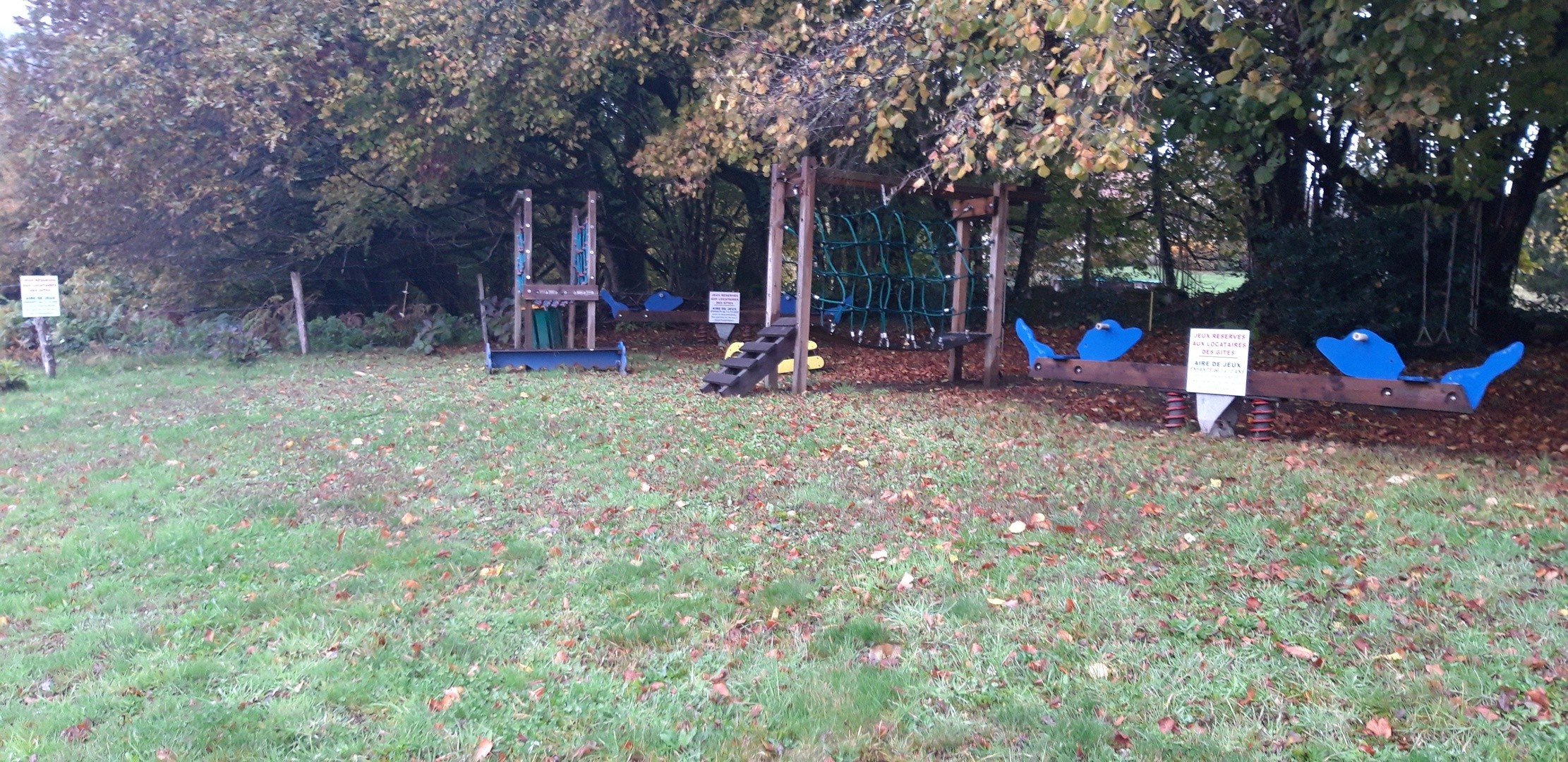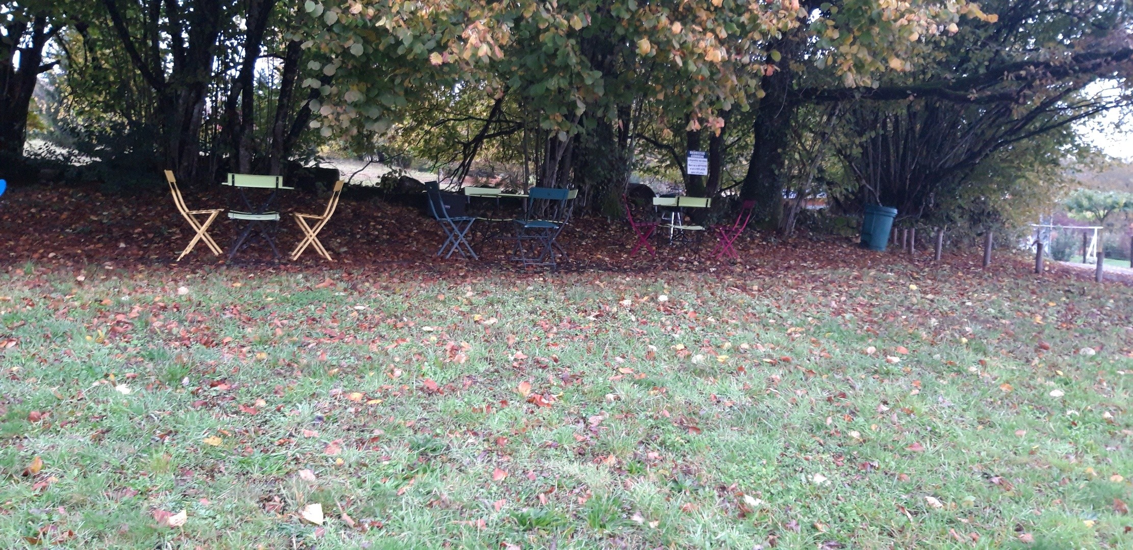 Sur le haut du terrain , se trouve un espace jeux aménagé pour les enfants et un espace convivial pour profiter de l'ombre des noisetiers et d'une vue imprenable à 180°.