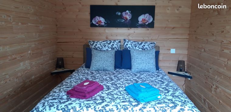 Loue 3 petits gîtes en bois tout confort de 32 m2 chacun exposés plein sud, pouvant être loués indépendamment.