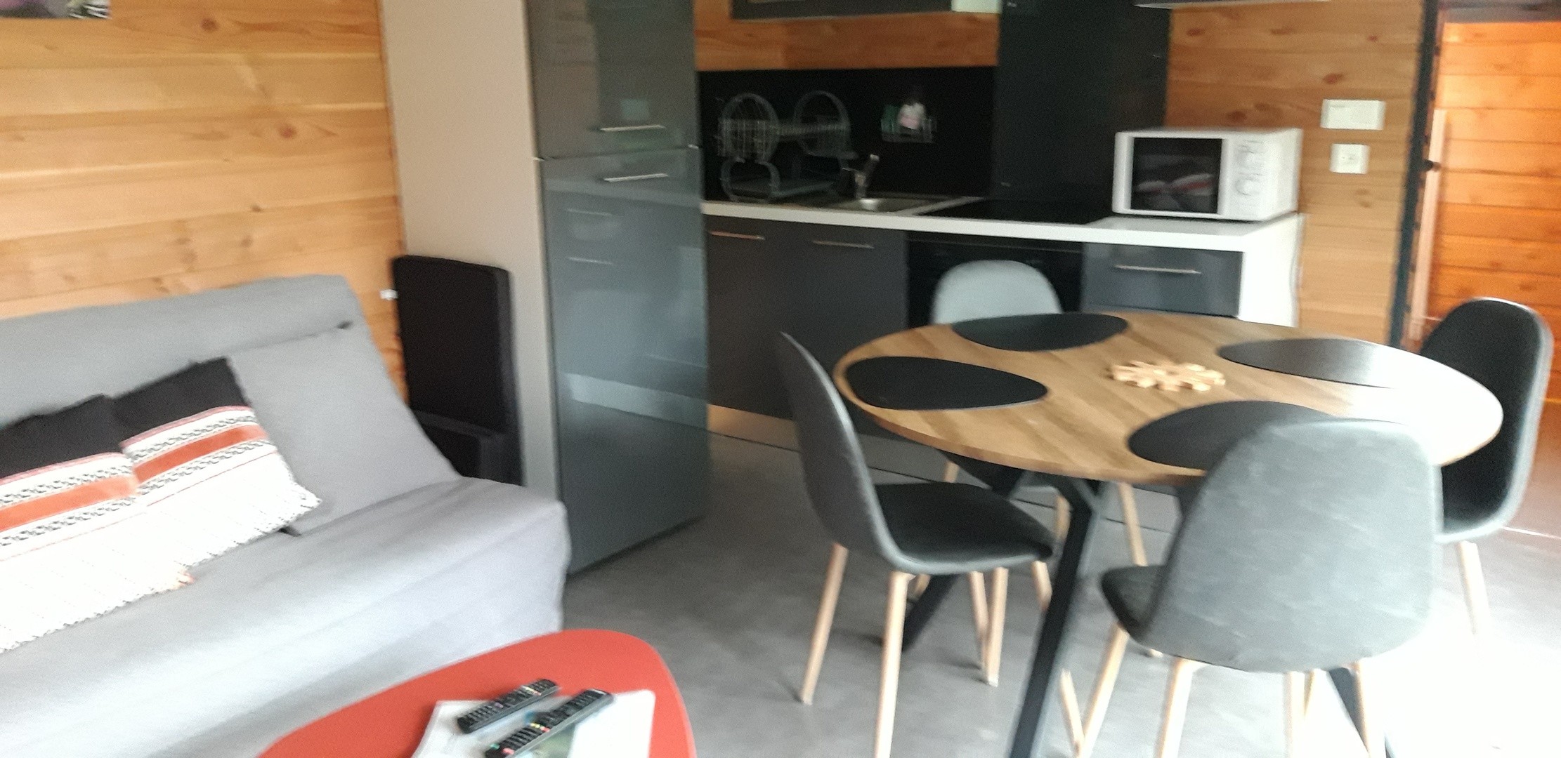 * un salon/cuisine entièrement équipée avec banquette BZ ("clic-clac").