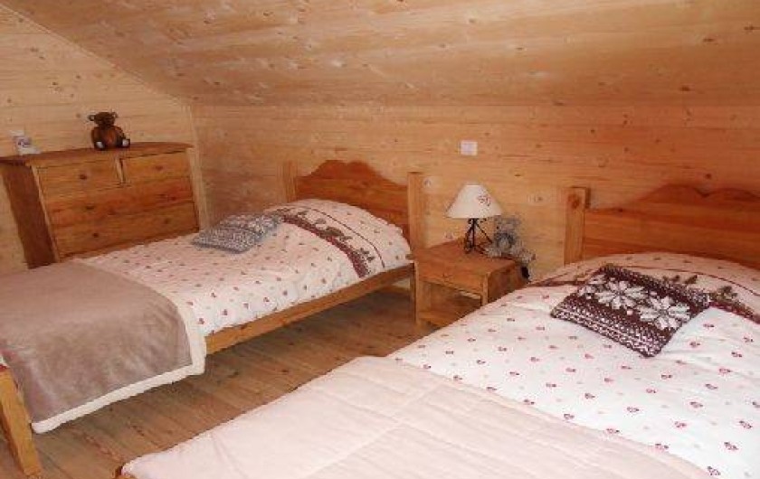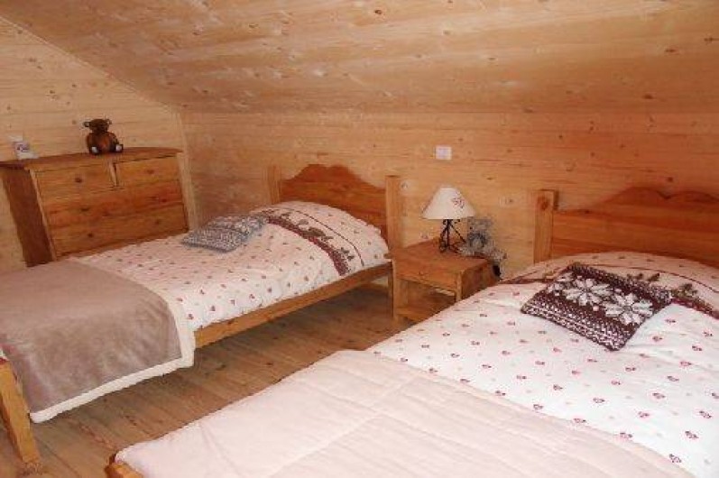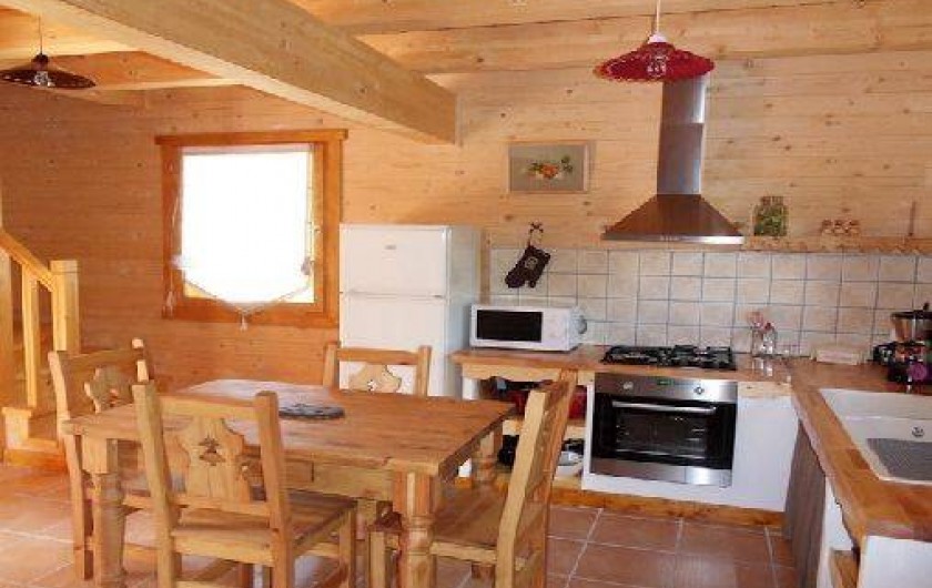 indépendant entièrement en bois. Voisin de la maison des propriétaires, sur une exploitation agricole bovine de 6 ha. Sur place, visite de la ferme comprenant chèvres, poulailler et vaches. Accès par 400 m de piste carrosable (chaines obligatoire en hiver). Terrain non clos commun. Terrasse privative avec belle vue sur la vallée. En cours de labellisation Tourisme et Handicap. Rdc et 1er étage. Rdc : cuisine/séjour/salon. 1 ch : 1 lit 140. Salle d'eau/wc. Buanderie avec accès par l'extérieur. 1er étage : 2 ch : 2 lits 90. 1 lit 140. Point d'eau avec lavabo et wc. Draps, linges de toilette et maison fournis. Possibilité ménage en fin de séjour. Tel portable à carte, se munir d'une recharge. Charges en sus.