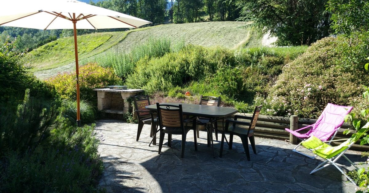 Extérieur : 1 abri de jardin, 1 terrasse avec salon de jardin et barbecue.
