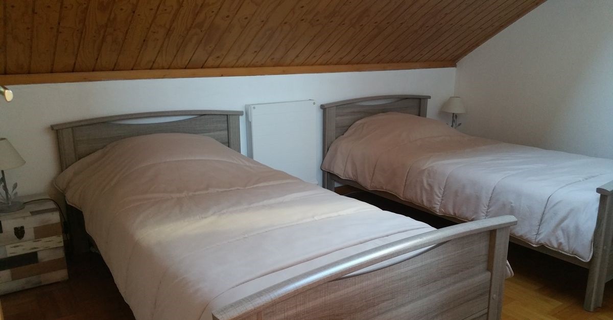 Étage: - 1 mezzanine avec canapé lit BZ 160 avec TV, 1 chambre avec 2 lits électriques jumeaux de 80 + placard, 1 chambre avec 2 lits jumeaux 80, 1 chambre avec lit double 160 + placard et 1 SDB (grande baignoire avec douche) + WC.