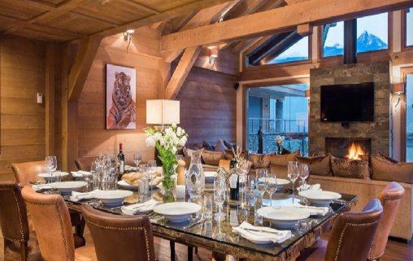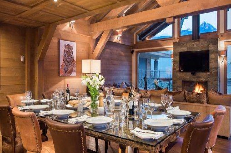 Le gran salon et salle à manger ouverte et spacieuse est située au deuxième étage, un éclairage doux, des lignes épurées et bois naturel créent un havre de sophistication. La clous de la pièce est la belle sculpture de Lorenzo Quinn, qui se trouve en face de la fenêtre loin dans le contexte dramatique de la chaîne de montagnes de Grand Sassière. Le canapé en forme de L invitant à merveille est l'endroit idéal pour se détendre avec un verre de champagne devant le feu de cheminée. La cuisine bien équipée donnant sur la grande table à manger crée un espace ludique idéal.