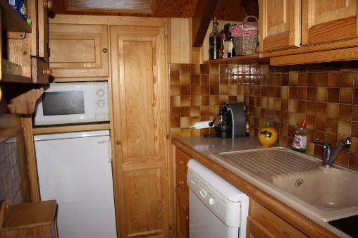 Dans la partie supérieure toute en bois, une chambre avec literie électrique en 140, une salle d'eau avec WC. Une cuisine équipée avec frigo, micro-onde, four, plaque de cuisson, vaisselle suffisante pour 6 personnes ..... Une pièce principale avec salon 2 convertibles et une partie salle à manger avec télévision, mini-chaîne, lecteur DVD. Une mezzanine de faible hauteur avec 2 lits en 70 (parfait pour les enfants) . Un grand balcon extérieur plein sud, Un sas d'entrée,, un placard pour entreposer les skis. Un garage commun pour les deux appartements qui permet d'entreposer tous les objets encombrants. Les deux appartements ont un chauffage électrique.