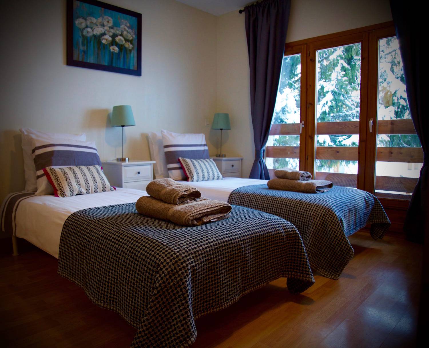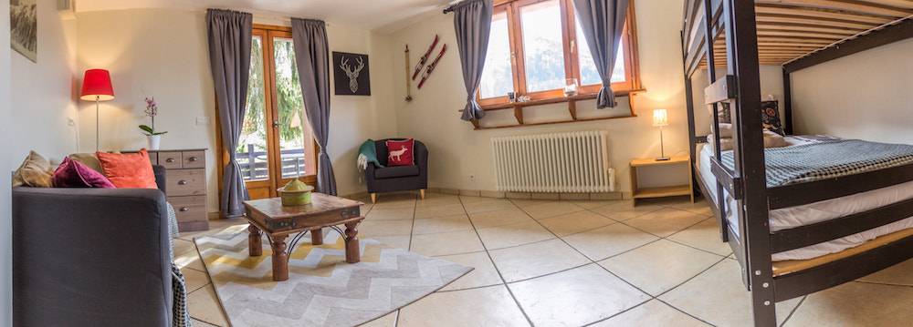 Le chalet peut recevoir 19 personnes dans 8 chambres avec salle de bains. Il y a 6 chambres doubles, une chambre