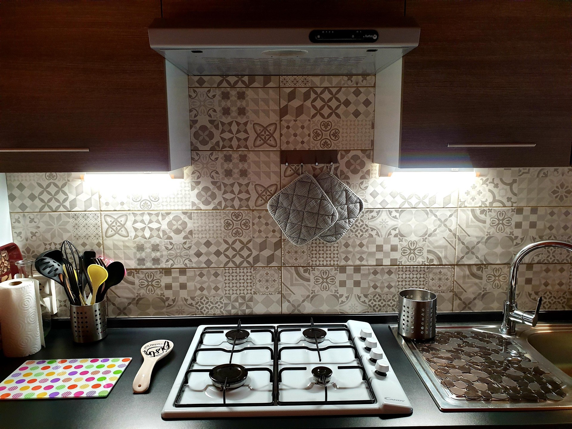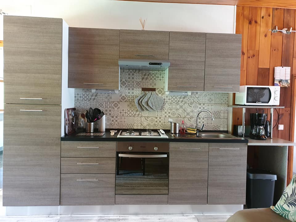 - cuisine équipée avec plaque de cuisson, évier, frigo et congélateur, micro-ondes, four, vaisselle et ustensiles de cuisine, cafetière électrique à filtre, bouilloire électrique et grille-pain, machine à raclette