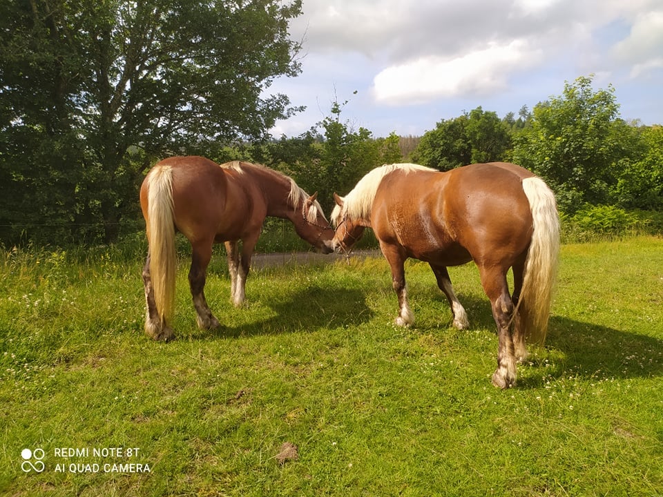 Nous sommes entourés de prés et la forêt est à 500 mètres.
