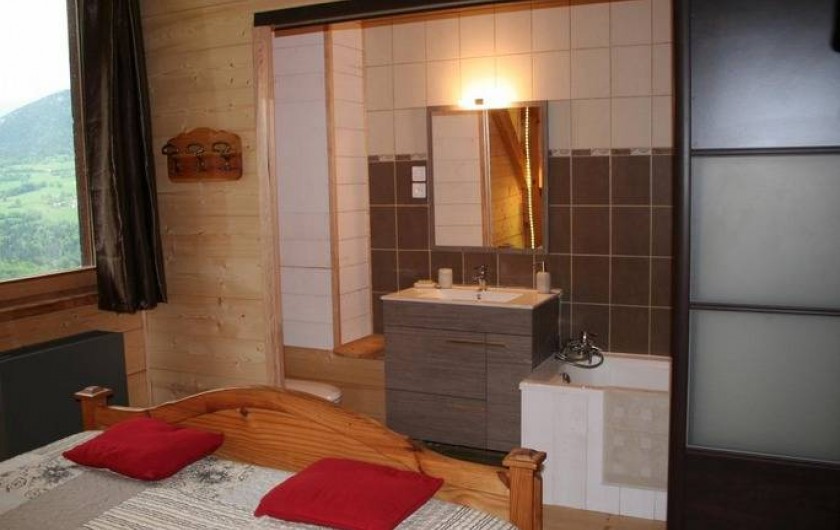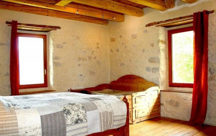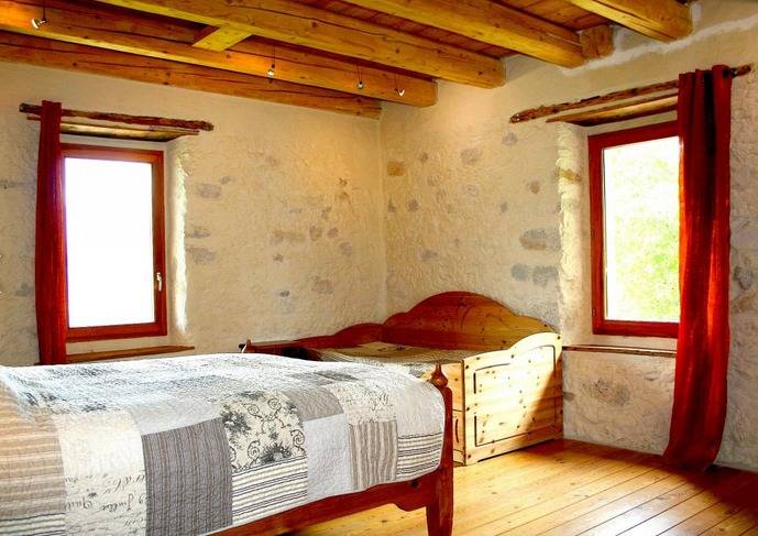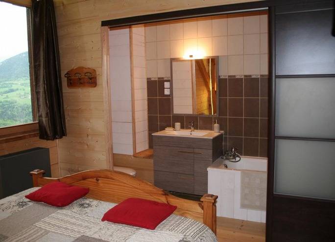 Maison d'hôtes composée de 3 chambres d'hôtes. 2 chambres + 1 chambre familiale au 1er étage (2 chambres 1 lit 2 pers. 160x200cm matelas à mémoire de forme / 1 chambre 1 lit 2 pers. 160x200cm matelas à mémoire de forme + 1 lit 1 pers. 90x190cm). Sanitaires complets dans chaque chambre (baignoire avec colonne de douche) dont une salle de bains comprenant une baignoire chromothérapie et une douche hydro / multi-jets. Salon réservé aux hôtes sur le même niveau bénéficiant d'une splendide vue sur les montagnes. Pièce de vie avec cheminée au rez-de-chaussée. WIFI gratuit (connexion satellite). Pas de télévision. Grande terrasse bien exposée. Accès par 1km de chemin de terre carrossable.