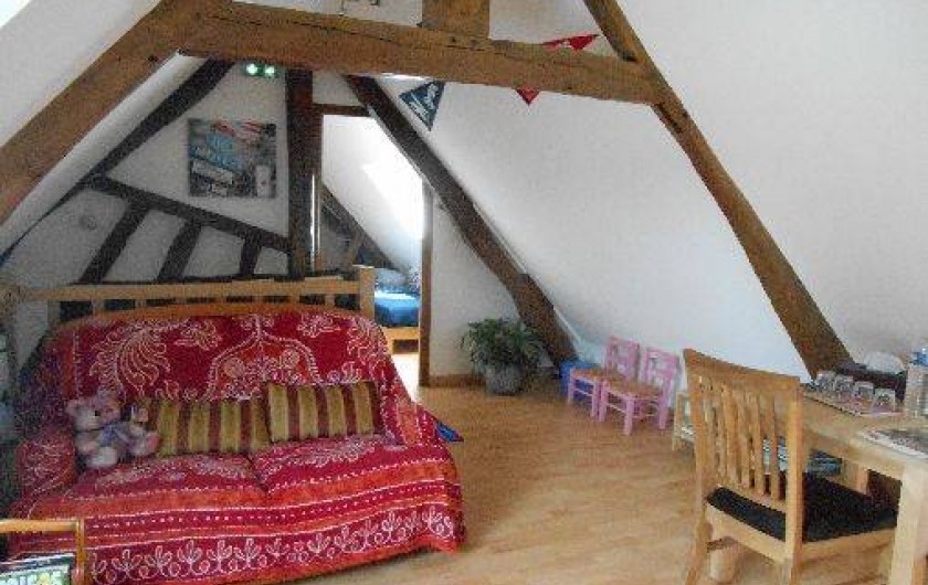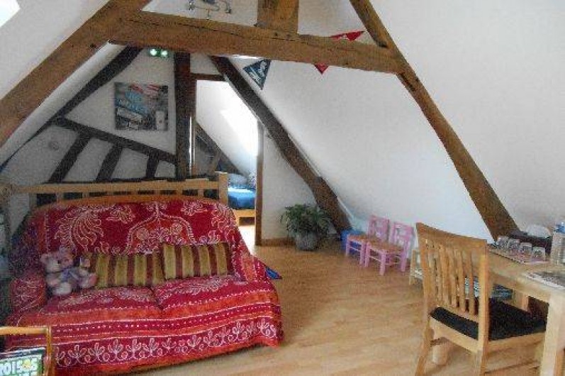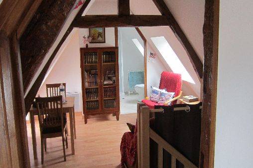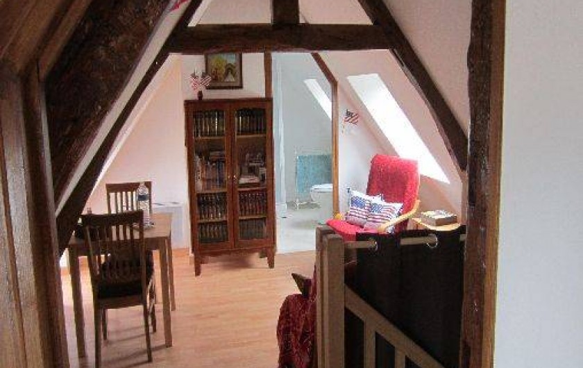 accessible aux personnes à mobilité réduite et a donc une vaste salle de bain avec une grande douche à l'italienne. La Chambre Américaine se trouve à l’étage et a en plus du lit double, deux lits simples de 90x190cm et un salon/bibliothèque avec coin enfant. Avec ses 3 pièces, cette chambre est donc comme une petite suite.
