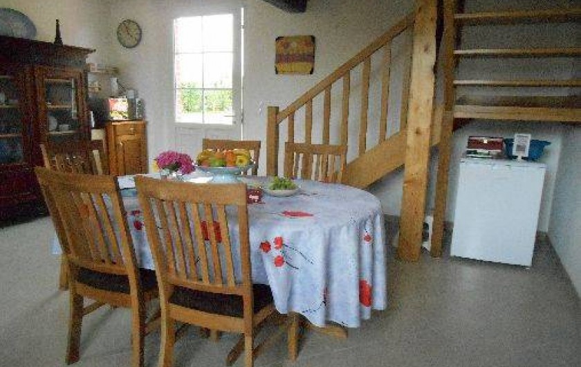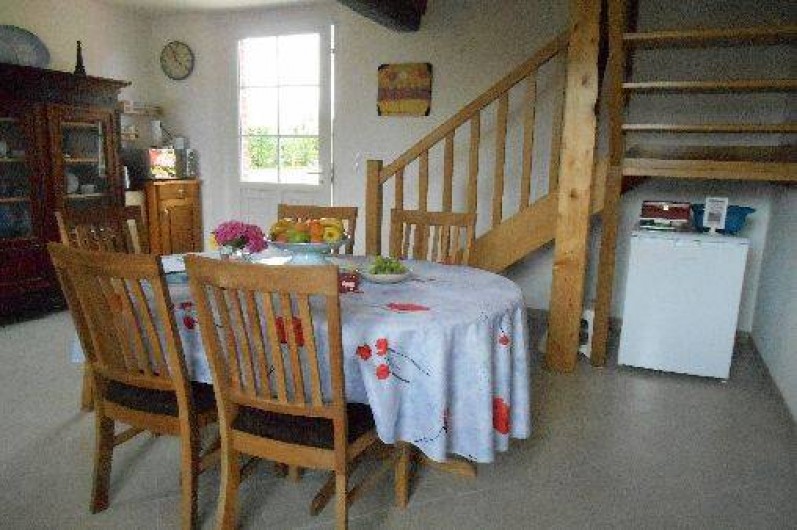 Le petit-déjeuner, compris dans le prix d’une nuitée, est servi dans la salle commune au rez-de-chaussée, sauf si le temps nous permet de le servir sur la terrasse dans le jardin. La terrasse est bien entendu également accessible par une rampe. Dans la salle commune vous trouverez un microonde, une bouilloire et un petit réfrigérateur à disposition.