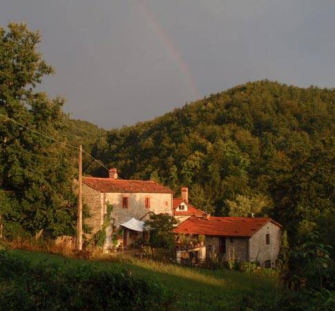 Les trois maisons du „Doccione di Sotto” sont d’anciennes fermettes relativement isolées dans un cadre pittoresque à 850 m d’altitude. Elles se trouvent au fond de la „Vallesanta” dans un environnement préservé au cœur des forêts et des champs à proximité immédiate de la réserve naturelle du Casentino .