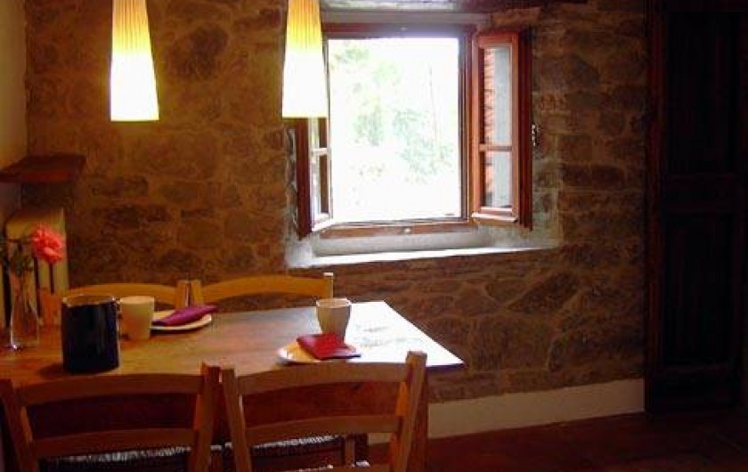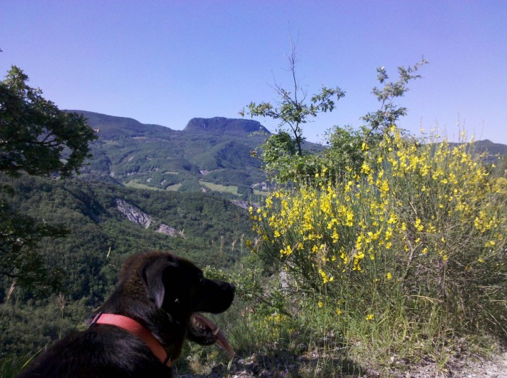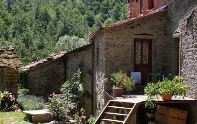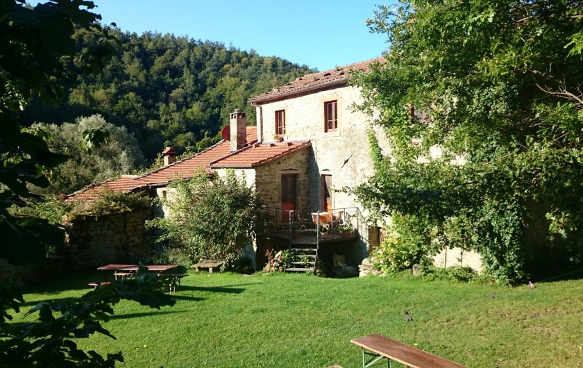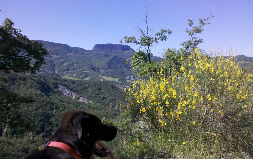 La terrasse devant la maison est ombragée par un grand chêne et vous permet d'avoir une vue magnifique sur la vallée. Barbecue.