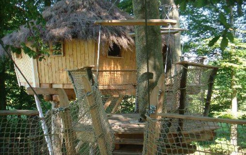 Nous vous proposons différentes cabanes en bois dans les arbres du Clos Masure dont la plupart sont accessibles dès le plus jeune âge (à partir de 2 ans).