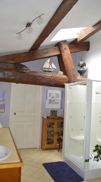 Cette chambre est la plus grande du domaine avec une superficie de 50 m2. Elle est équipée d'un lit en 160 cm et d'un lit en 90 cm. Elle possède une salle d'eau attenante et un cabinet de toilette indépendant.