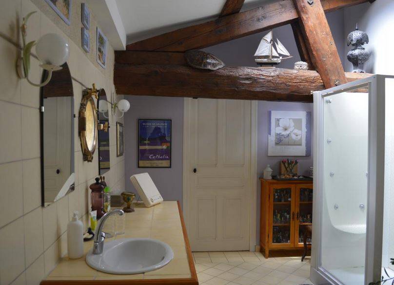 La salle d'eau reliée à cette suite est d'une surface de 15 m2. Elle possède un large plan vasque, une douche et un cabinet de toilette.