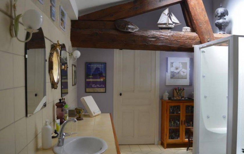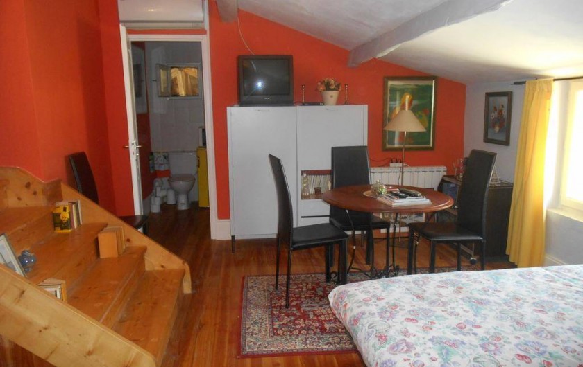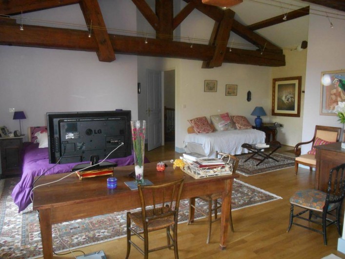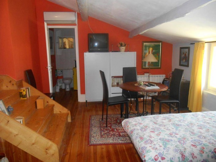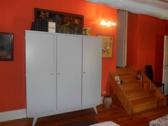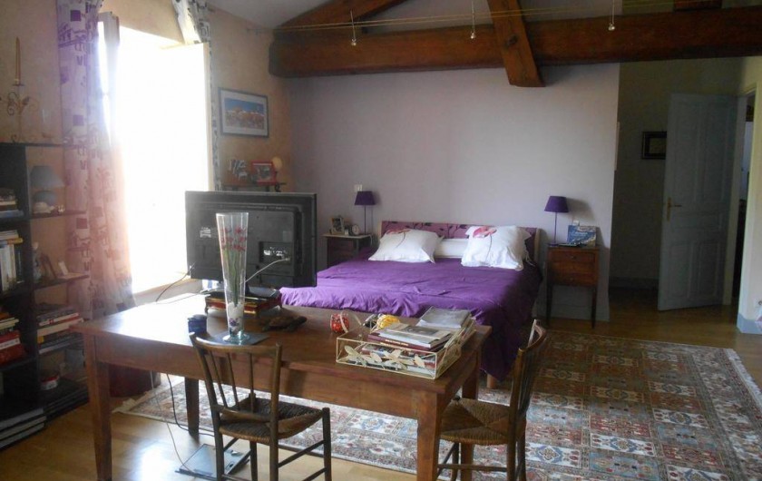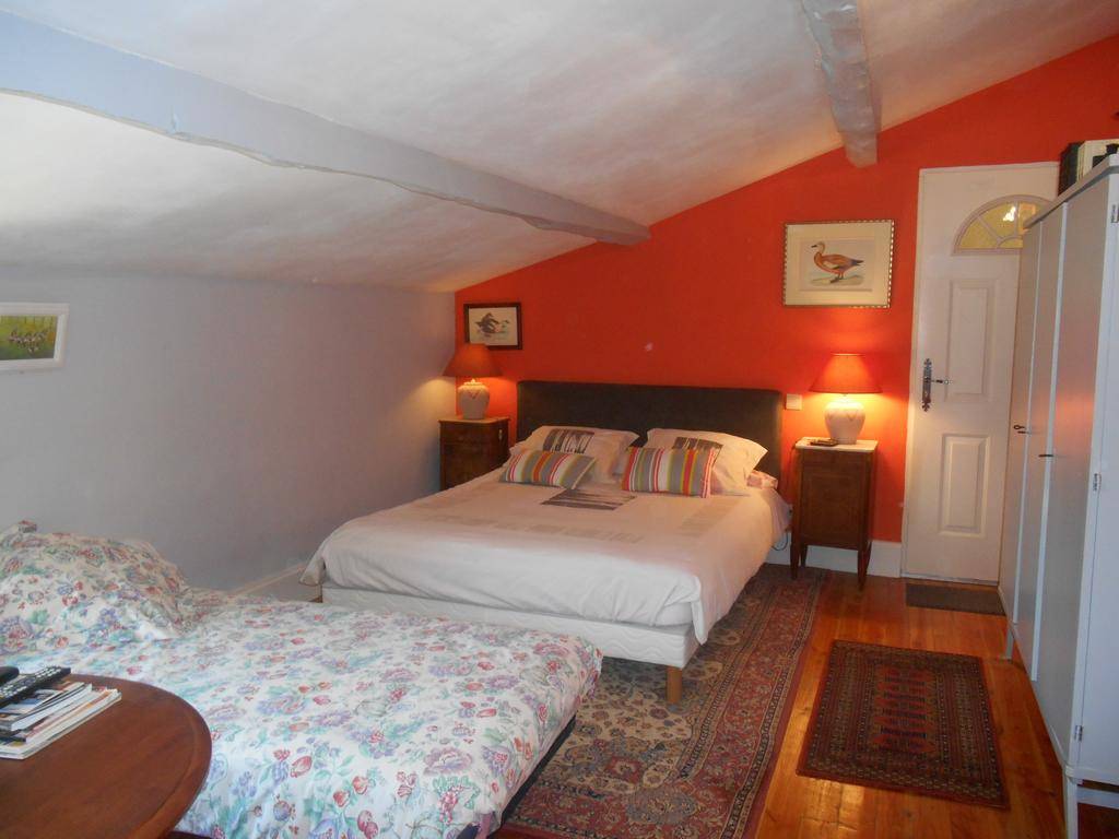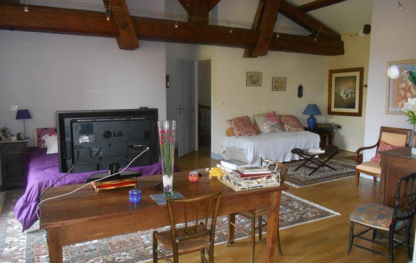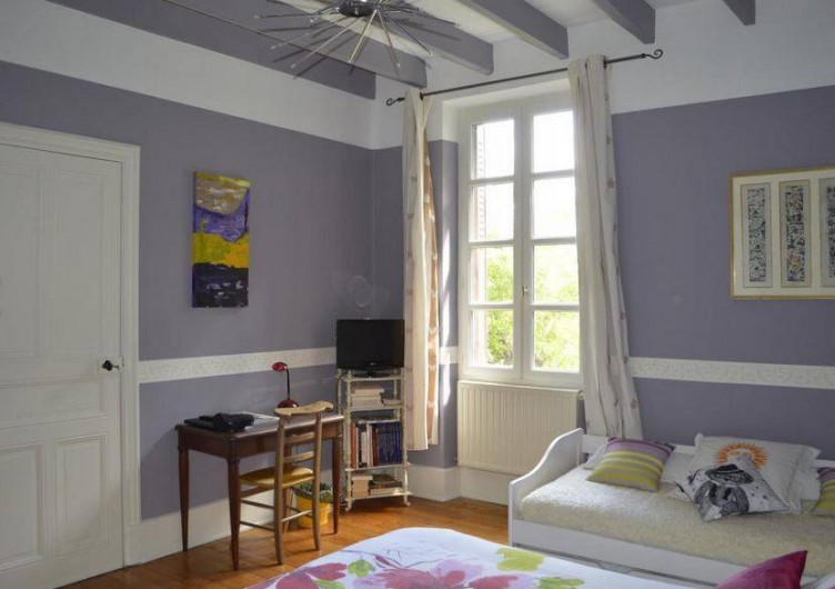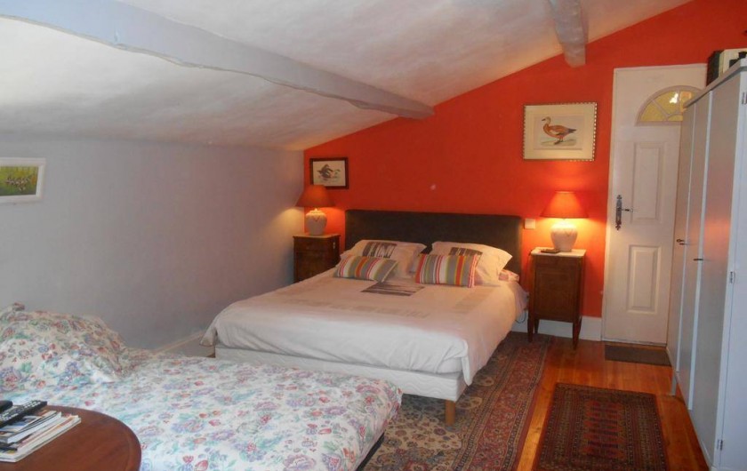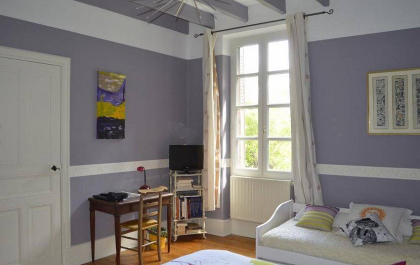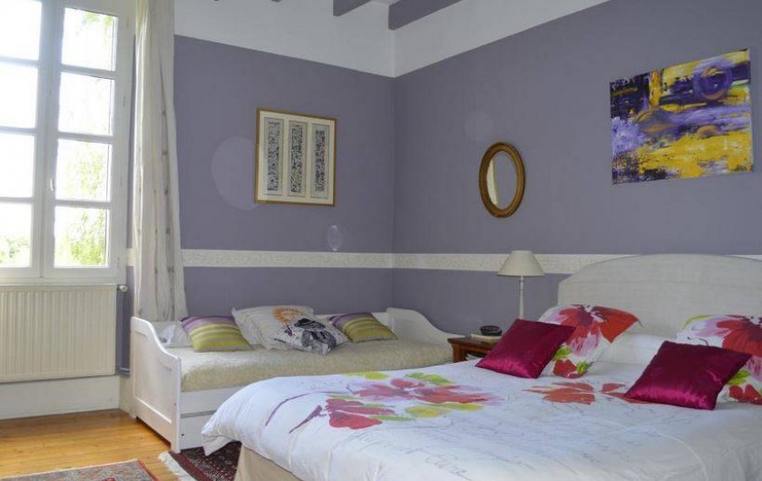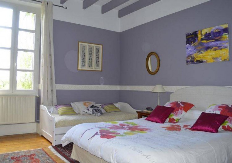 Cette chambre de 20 m2 possède un entrée indépendante, elle est équipée d'un lit en 140 cm et d'un lit en 90 cm, d'une salle de bain avec baignoire et cabinet de toilette. Possibilité de lit parapluie.